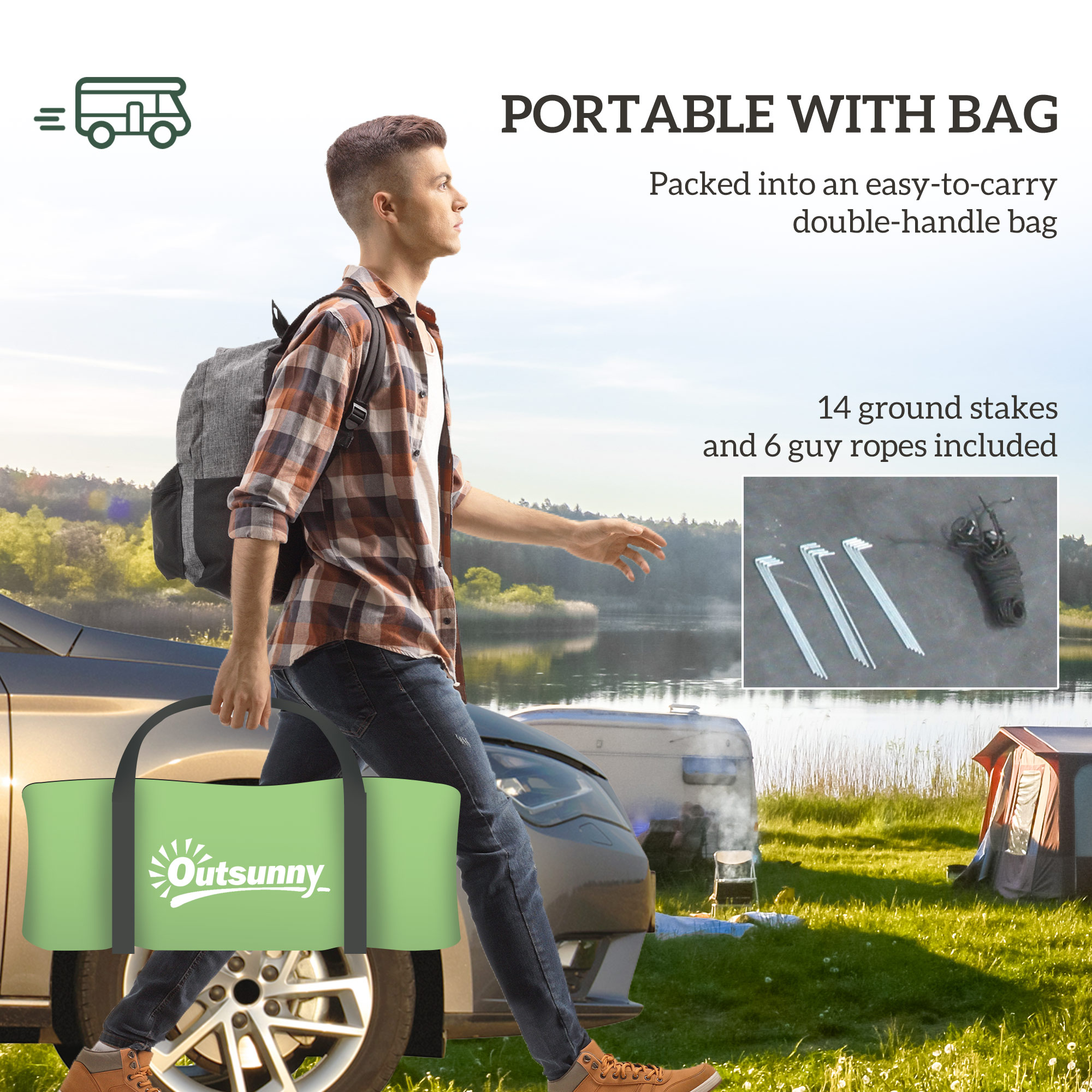 A spacious home for camping trips, thanks to this four man tunnel tent. The fabric shell offers 3000 mm of rain protection, making it suitable for use in light to mild weather. The two room design comes with a main bedroom a living room: a place to sleep and another to relax. Friend and family tent is complete with an inner hook to hang a light inside, so you can see when dark. 14x ground stakes, 6x guy ropes and a carry bag included.