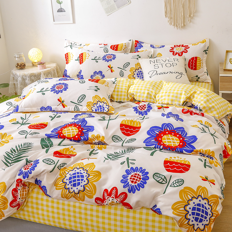 Bed fabric: cotton, polyester Size:2.2m: Quilt cover: 220cmx240cm; bed sheet: 230cmx250cm; pillow case: 48cmx74cm*2pc