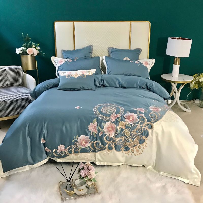 Four-piece Color-blocking Cotton Embroidered Quilt Cover For Bed