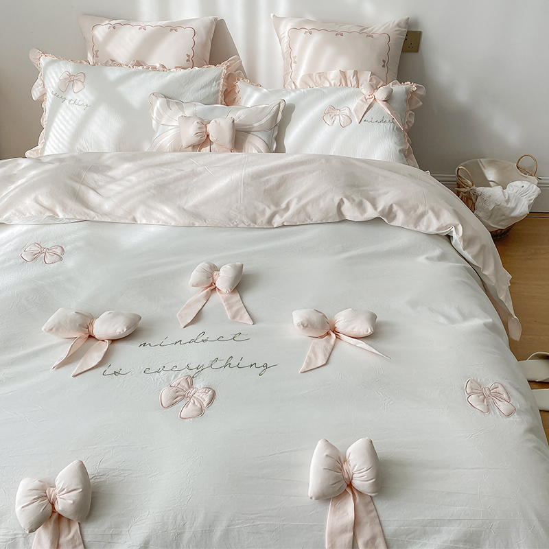 Four-piece set: a quilt cover, a bed sheet, a pair of pillowcases. Five-piece set: a quilt cover, a bed sheet, a pair of pillowcases, and a small pillow (including core)