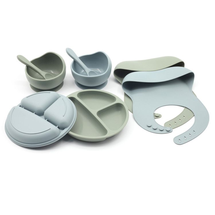 Product weight: Bowl: 148g; Bib: 110g; Dining plate: 136g; Silicone spoon: 25g; Silicone fork 23g