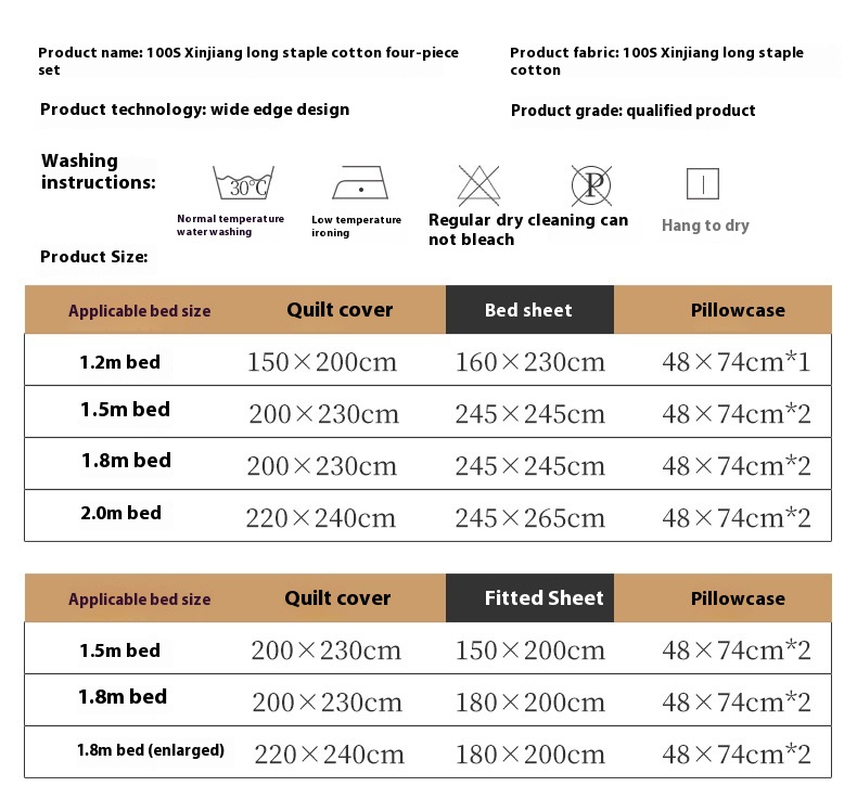 Size specification: 1.2m bed sheet three-piece set [suitable for 1.5*2.0 quilt], 1.5m bed sheet four-piece set [suitable for 2.0*2.3 quilt], 1.8m bed sheet four-piece set [suitable for 2.0*2.3 quilt]], 2.0m bed sheet four-piece set [suitable for 2.2*2.4 quilt], 1.5m fitted sheet four-piece suit [suitable for 2.0*2.3 quilt], 1.8m fitted sheet four-piece suit [suitable for 2.0*2.3 quilt]], 1.8m fitted sheet plus-sized four-piece set [suitable for 2.2*2.4 quilt]]