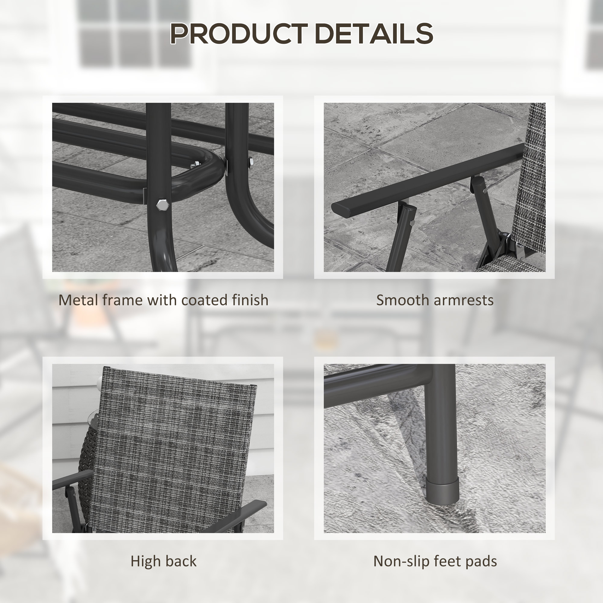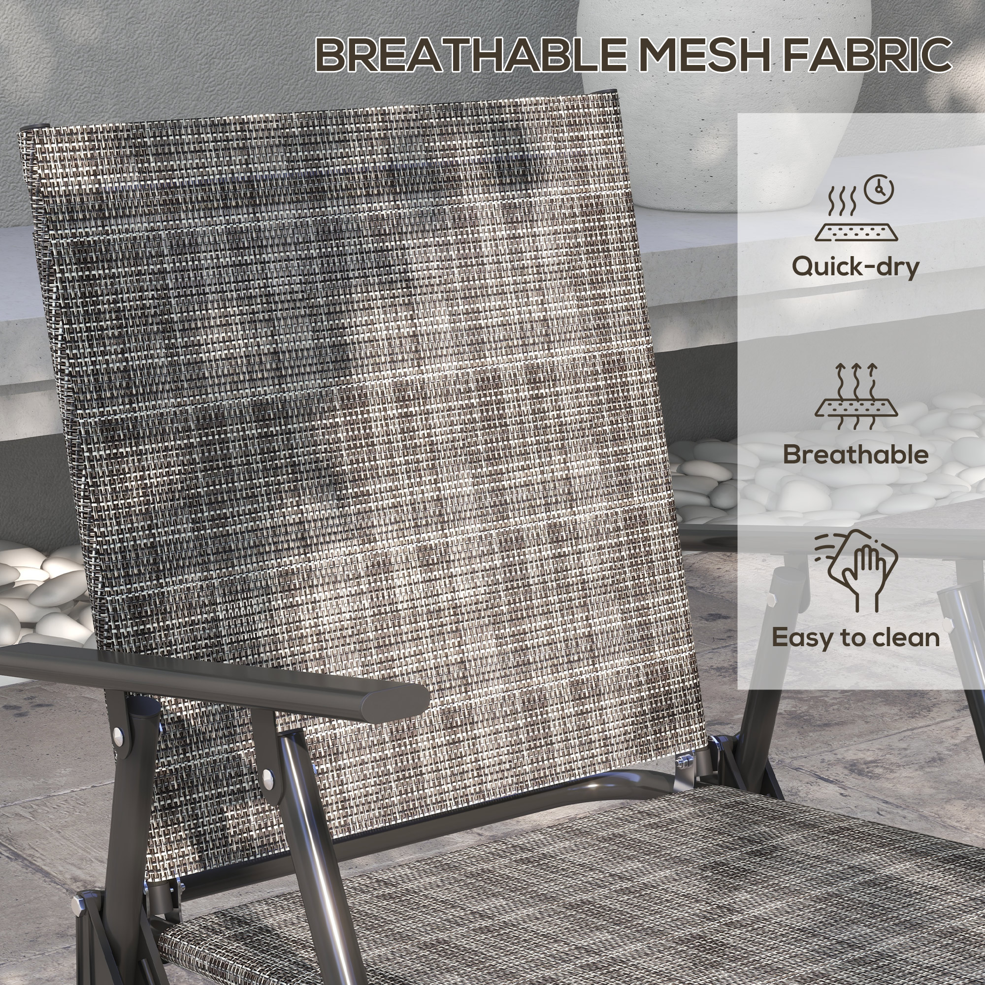 For rest and relaxation outdoors, go for this four-piece sofa set. The steel frames ensure a strong core, with breathable mesh fabric panels to hold you comfortably. The tempered glass tabletop ensures a safe holding place, plus a sleek look. Comes with two chairs, a loveseat and small coffee table.