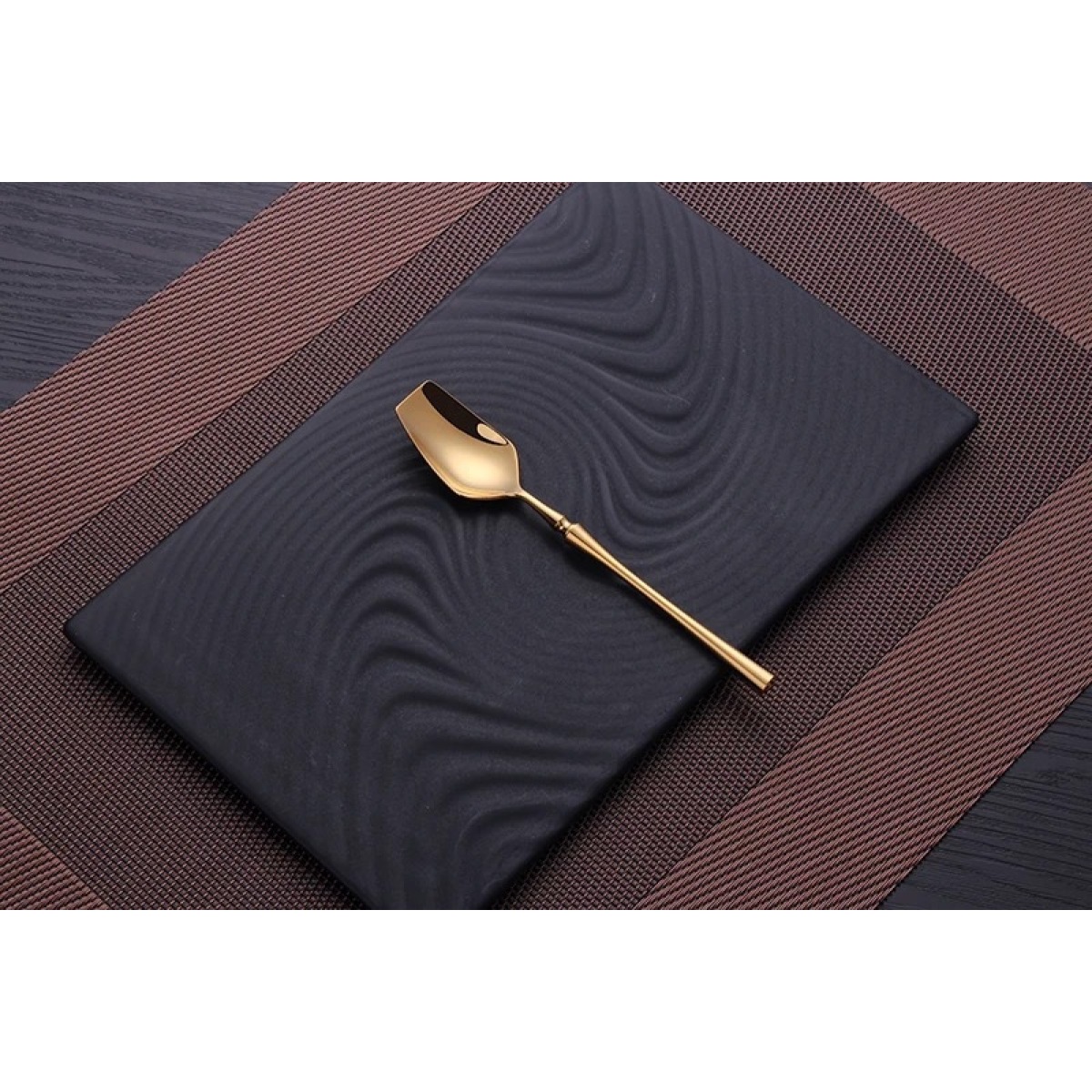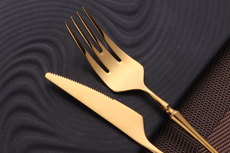 Color: table knife (golden), fork (golden), dinner spoon (golden), tea spoon (golden), four-piece set (golden)