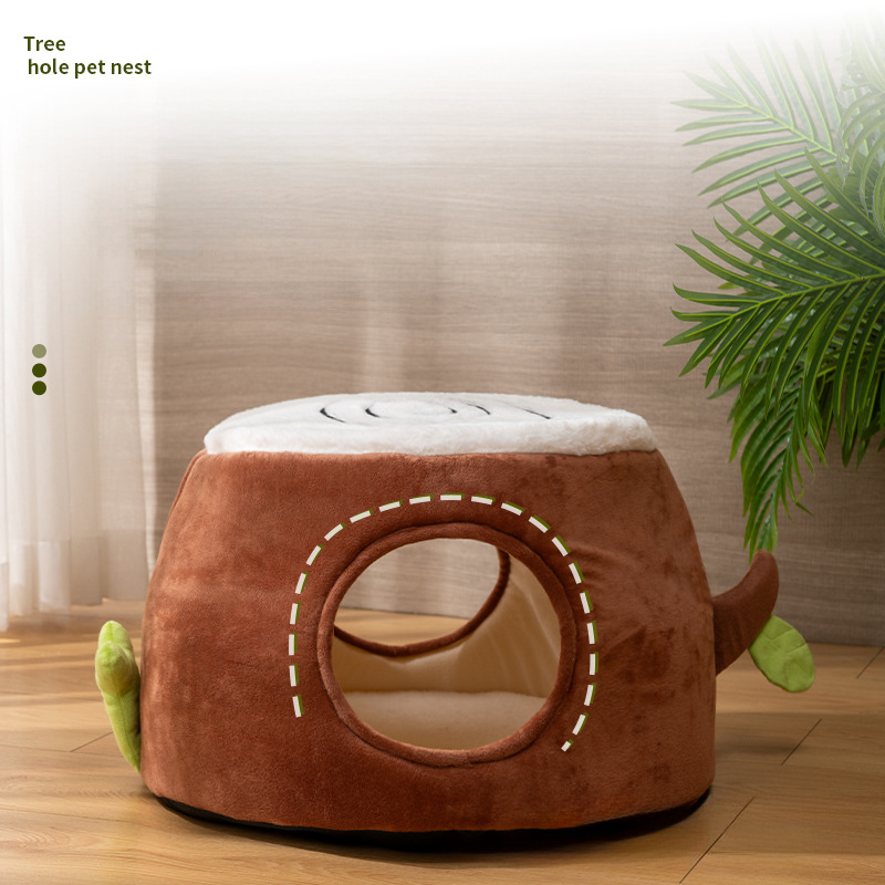Four Season Universal Relief Pet Cat Nest, Transformable And Dual-use Double-layer Tree Stump Cat Nest Door And Double