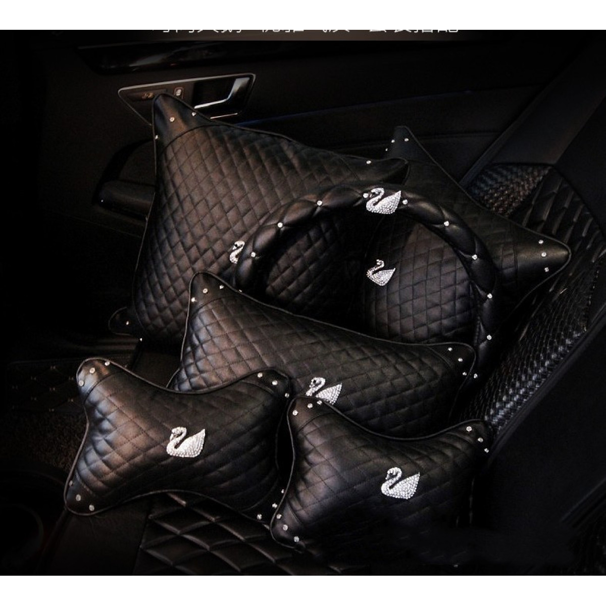Features: steering wheel cover, lumbar pillow protector, headrest to protect the head and neck, car key from carrying and tearing, driver license storage bag