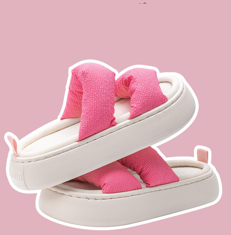 Four Seasons Linen Slippers Women's Thick Bottom Indoor Home Furnishing Fabric Art