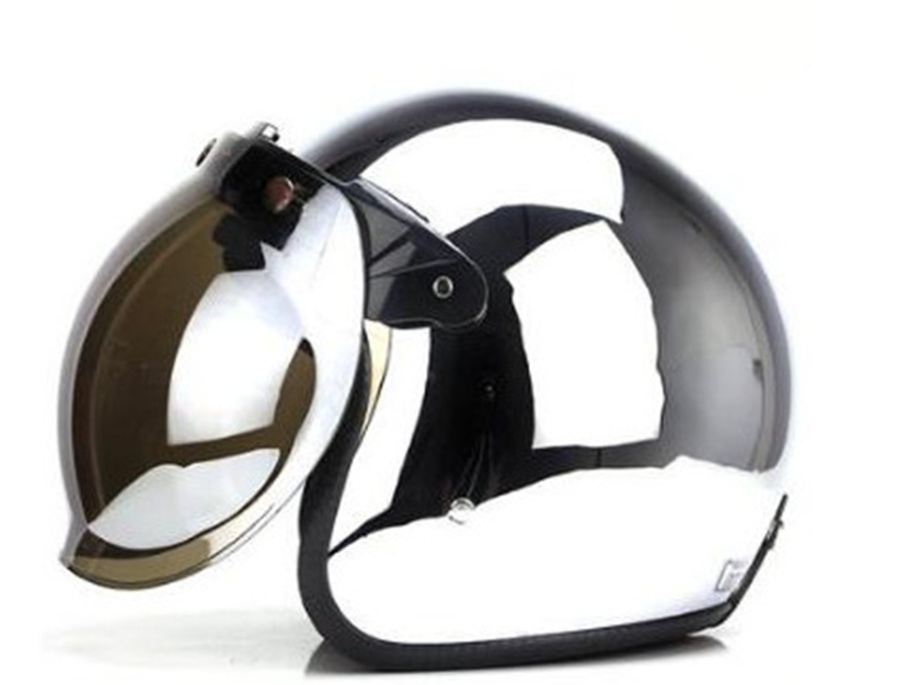 Four Seasons Men'S And Women'S Retro Battery Electric Car Helmet Mirror Reflection Silver Plated Half Helmet Personality Cool Motorcycle Helmet