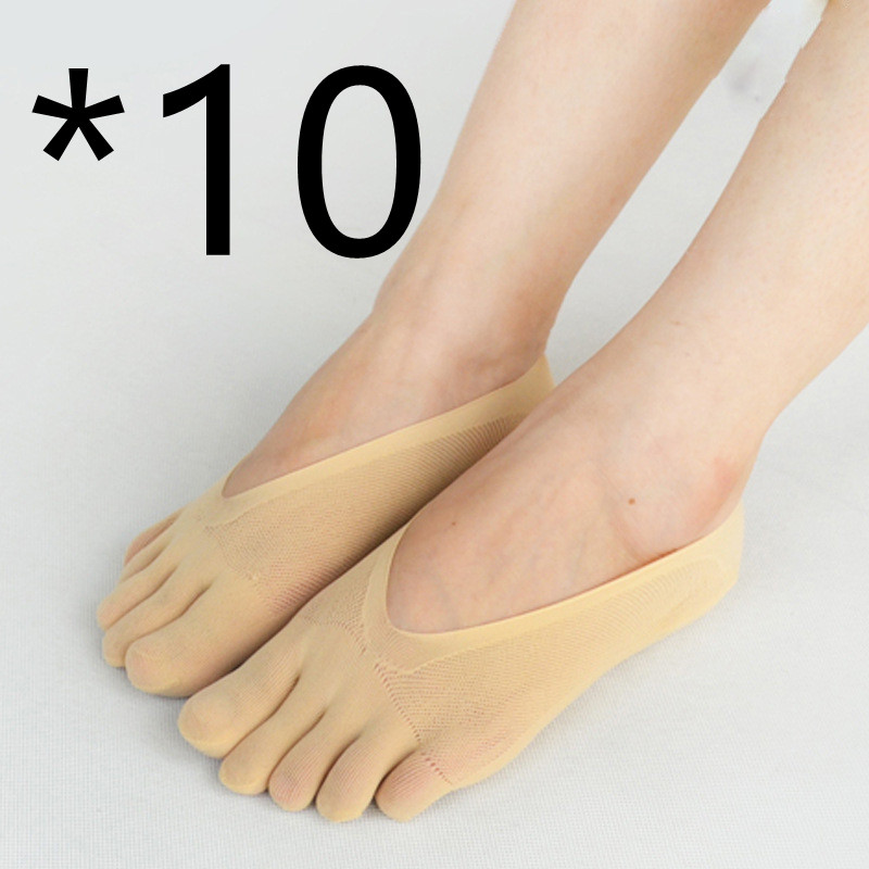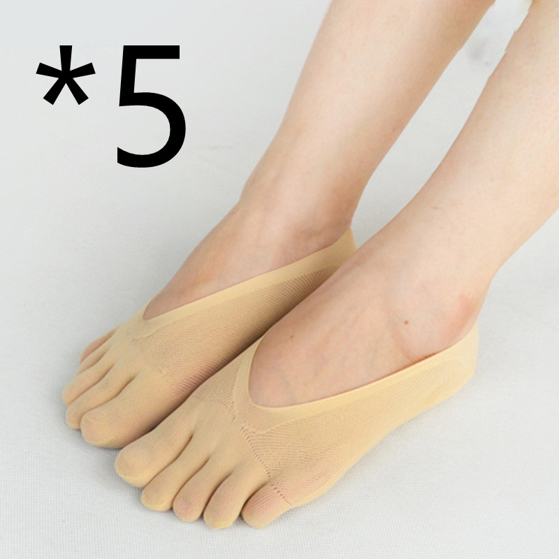 Four Seasons Ultra-Short And Thin Glue Split-Toe Five-Finger Socks Women'S Shallow Mouth