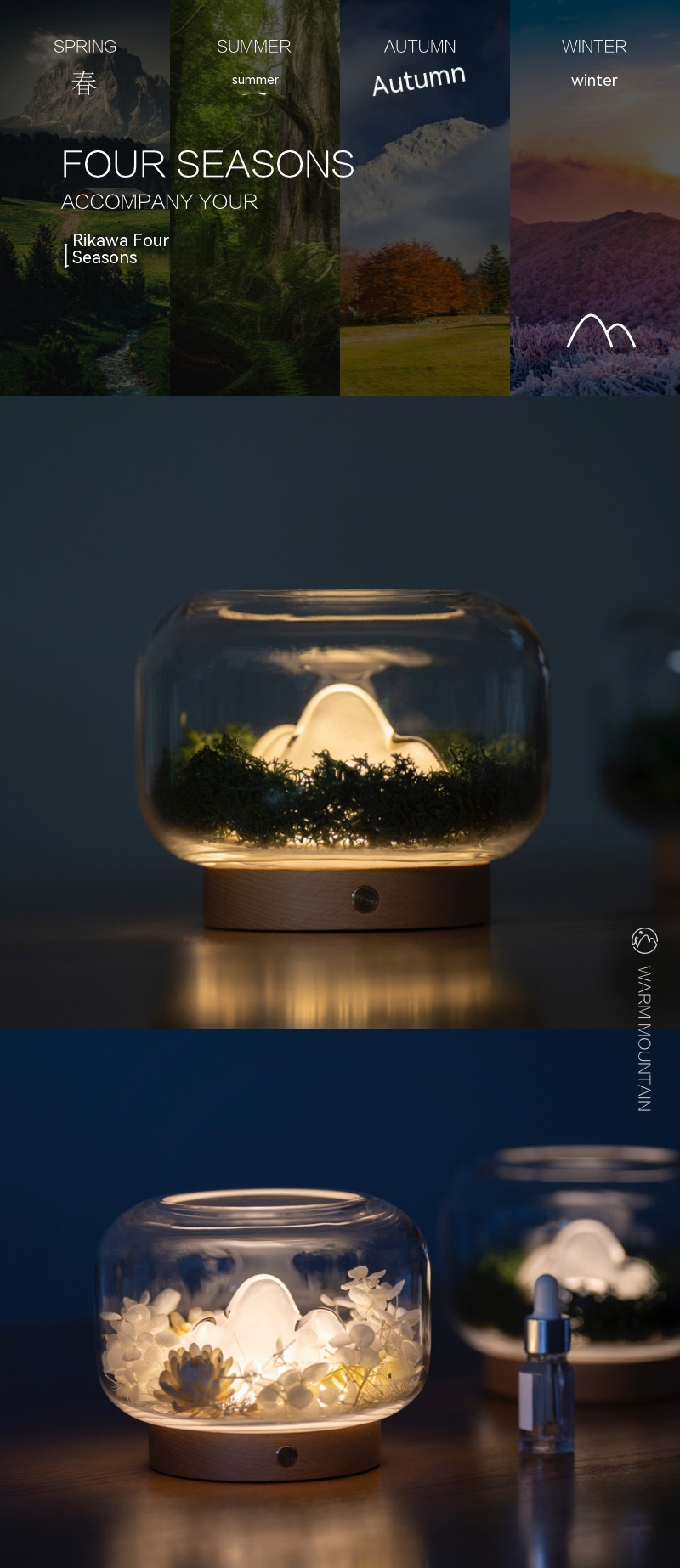 Aroma types: Warm Mountain Aroma Lamp - Spring Sprout, Warm Mountain Aroma Lamp - Summer Gift, Warm Mountain Aroma Lamp - Autumn Whispers, Warm Mountain Aroma Lamp - Winter Love Song, Warm Mountain Lamp - No Expansion Fragrance, Accessory Pack - Spring Sprout, Accessory Pack - Winter Love Song, Accessory Pack - Autumn Whispers, Accessory Pack - Summer Gift, Essential Oil - Spring, Essential Oil - Summer, Essential Oil - Autumn, Essential Oil - Winter