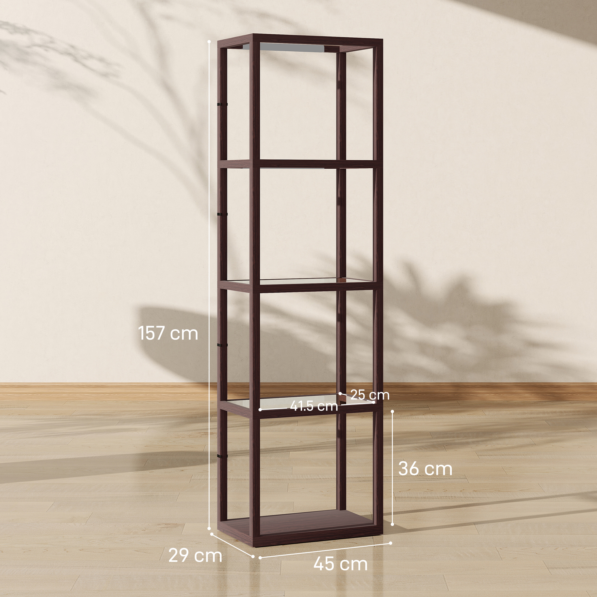 Merging together warm ambience and handy storage, with this floor lamp light. Fitted with four warm white LEDs, which adjust between three levels - set the ambience you want. It has four shelves - storage to keep your favourite pieces on show. The tempered glass shelves are sleek and allow the light to pass through from top to bottom.