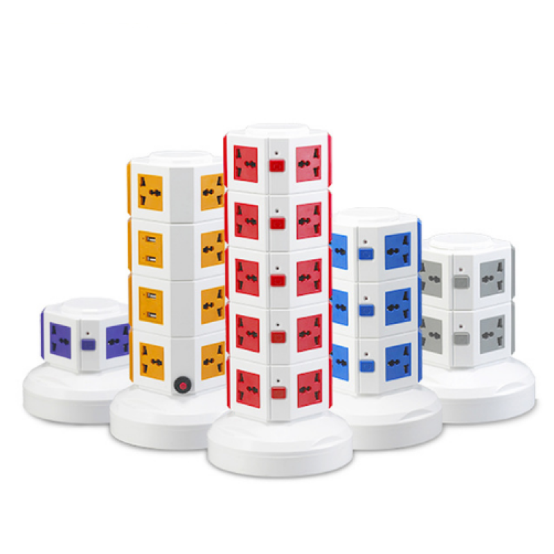 Multifunction Smart Electrical Universal Vertical Power Socket Tower Outlet with USB Ports US/UK/EU/GB Plug 3 meter length Cable