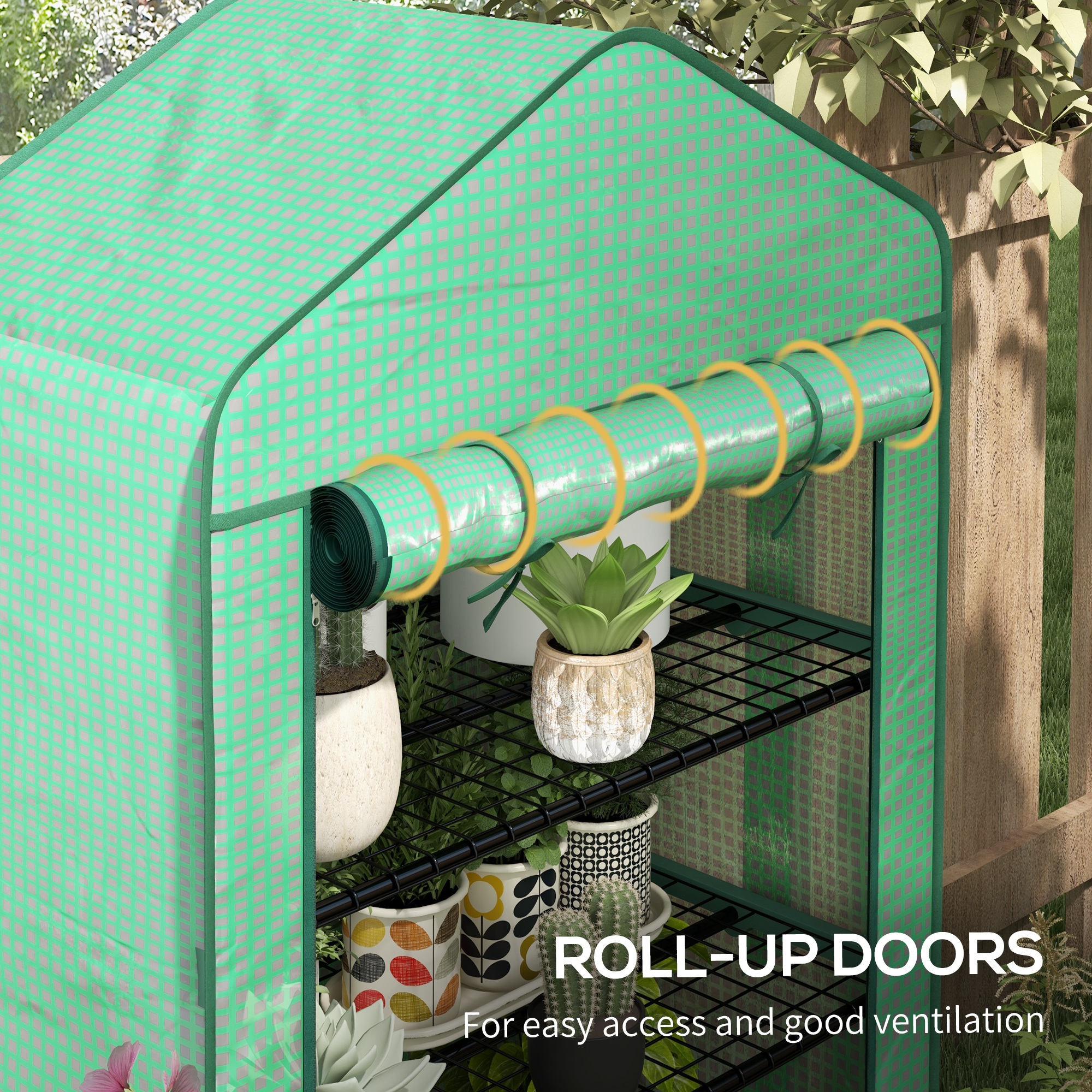 • Roll-up zipped door for easy access and ventilation