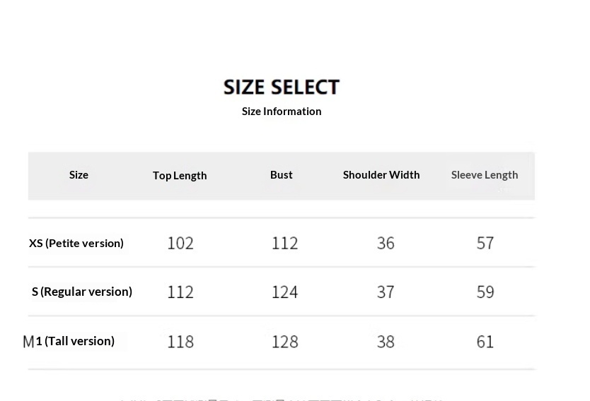 Size: XS (for shorter heights), S (standard size), M (for taller heights)