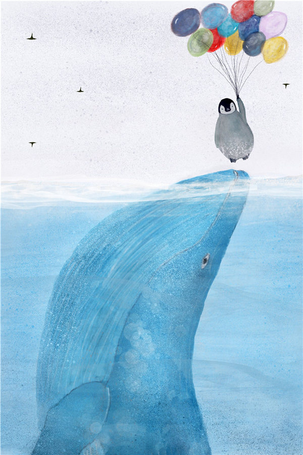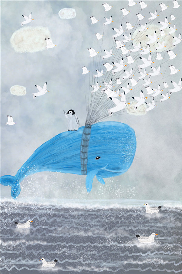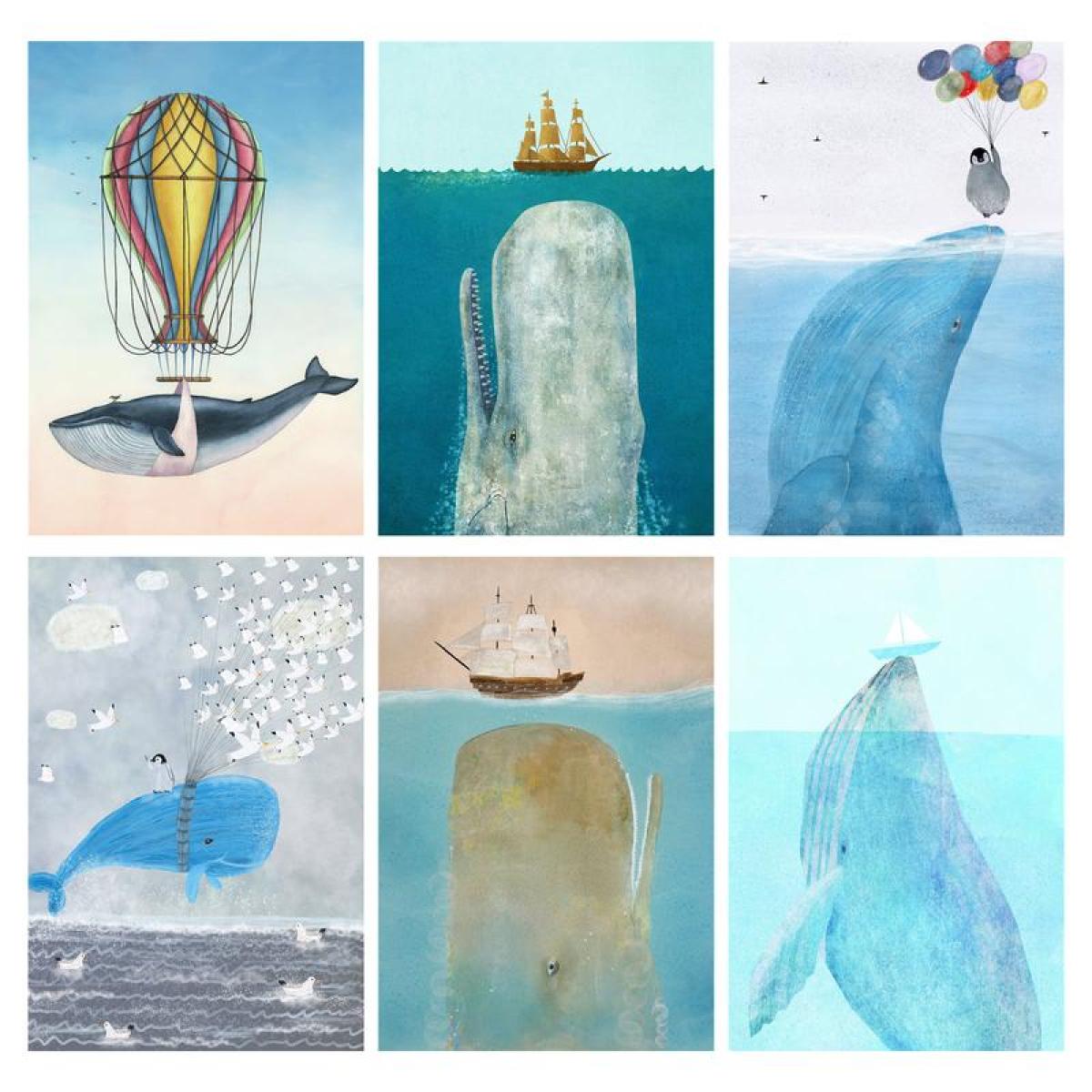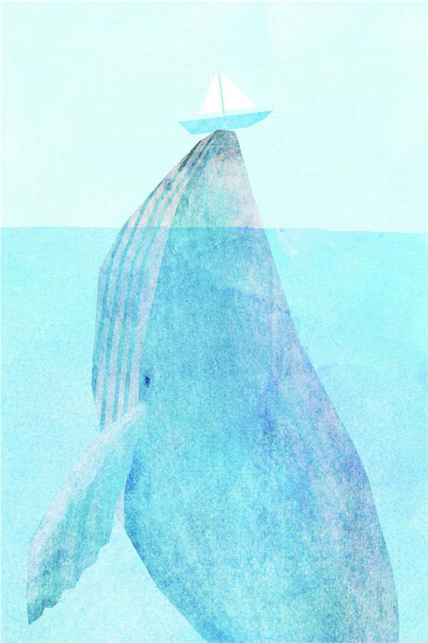 Frameless Blue Whale Digital Painting Wall Art Picture Decoration
