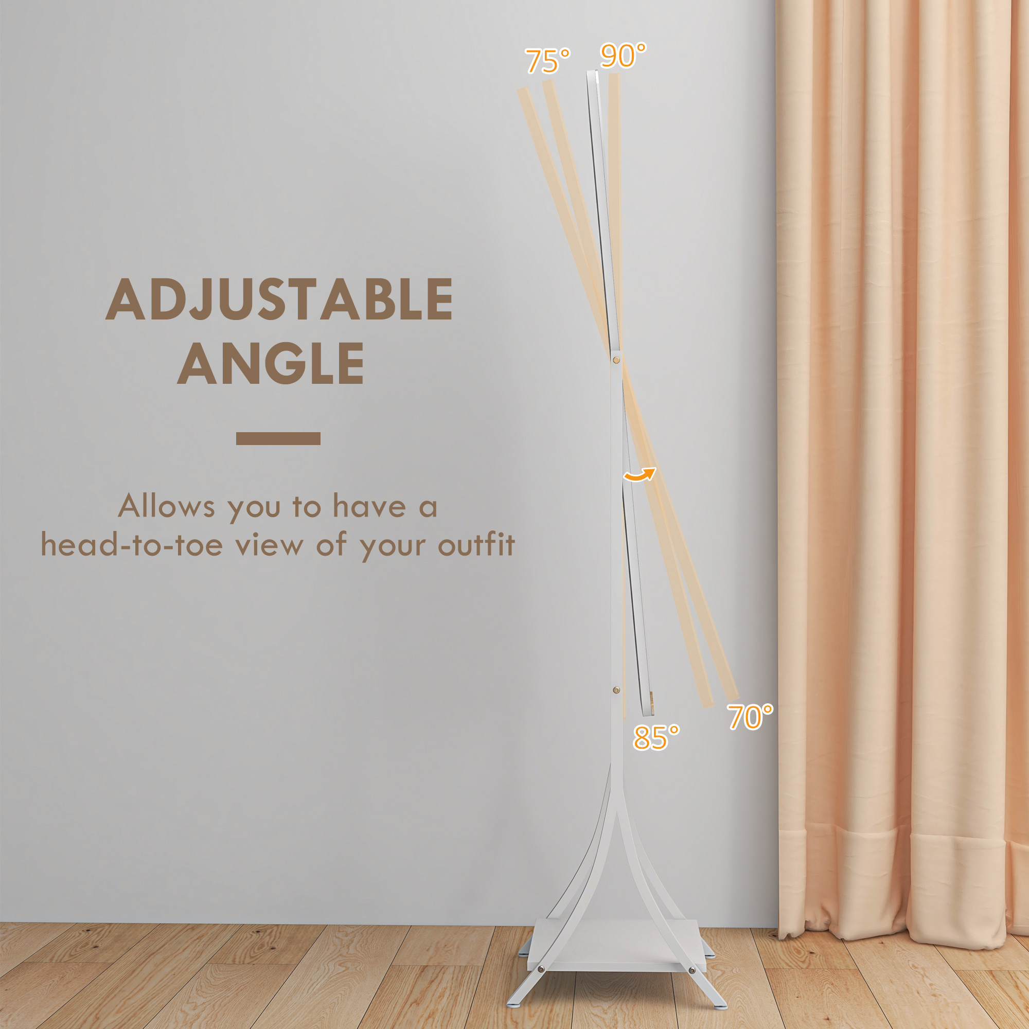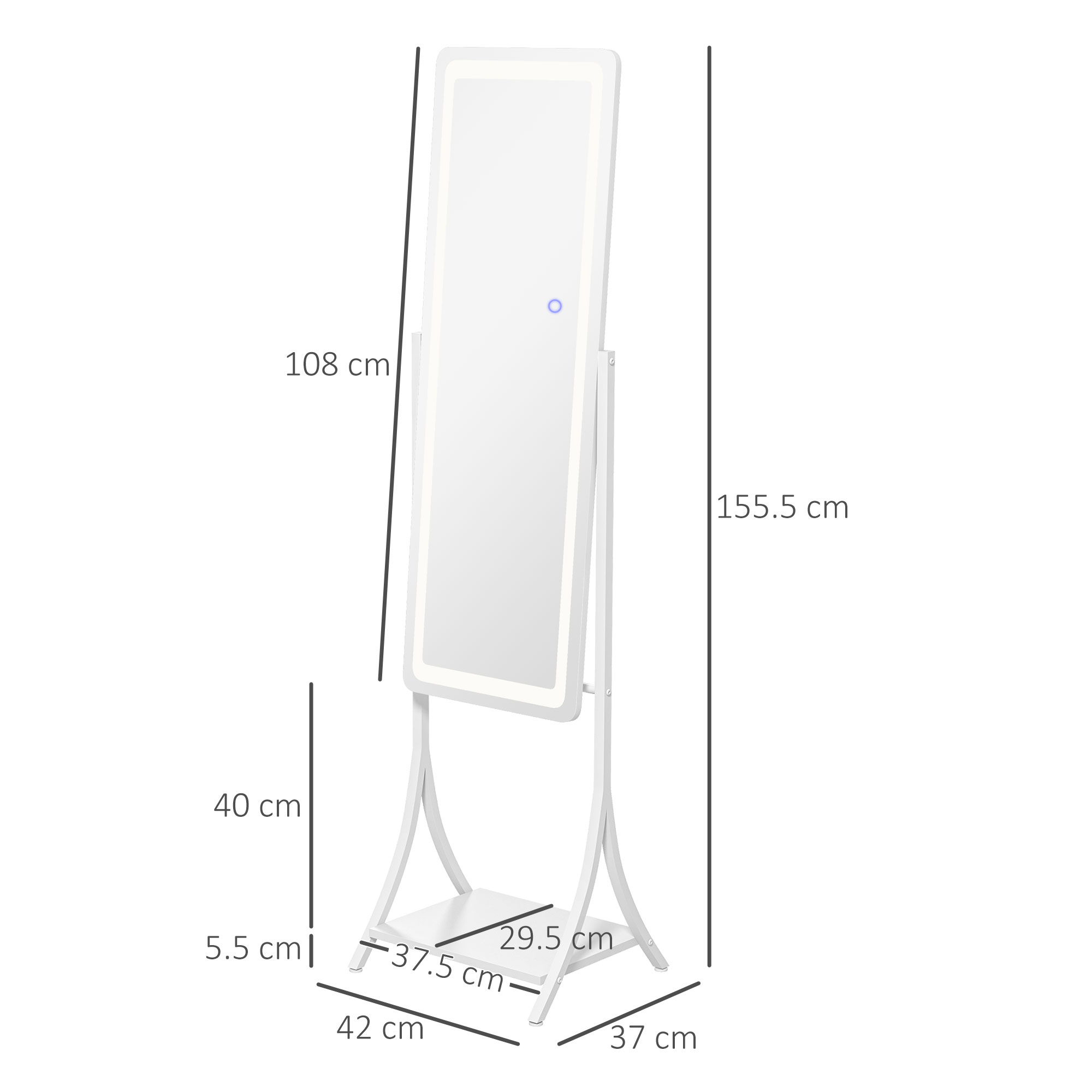 Illumination, day and night, so you can get ready - whenever. This full-length mirror is a classic piece, with a contemporary twist: it comes with an outer LED light to illuminate the mirror whenever you need it. Choose between warm white, white and cool white - with adjustable brightness too. Set the mirror angle to 70°, 75°, 85° or 90°; the full length size is perfect for seeing your whole outfit. Complete with a handy bottom shelf.