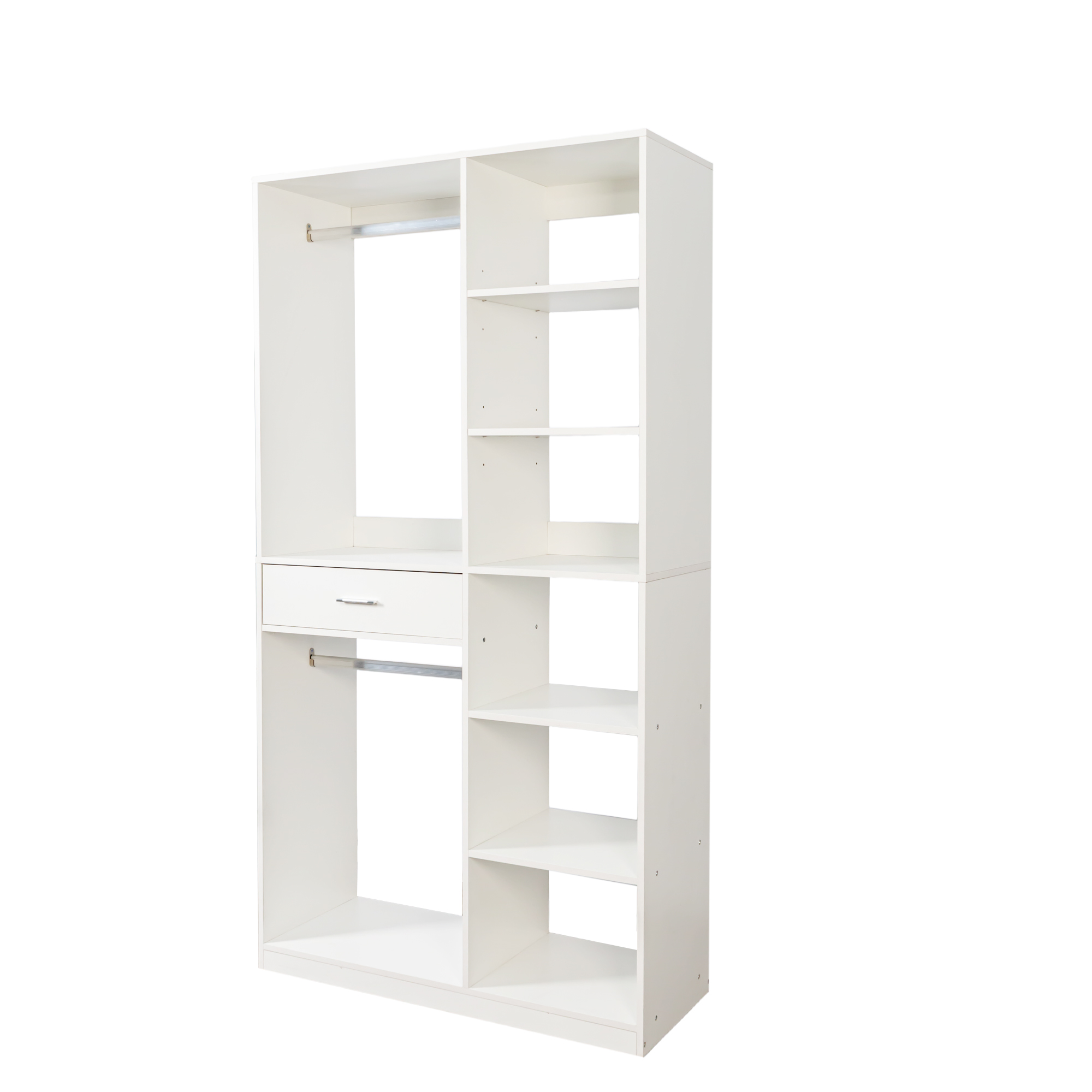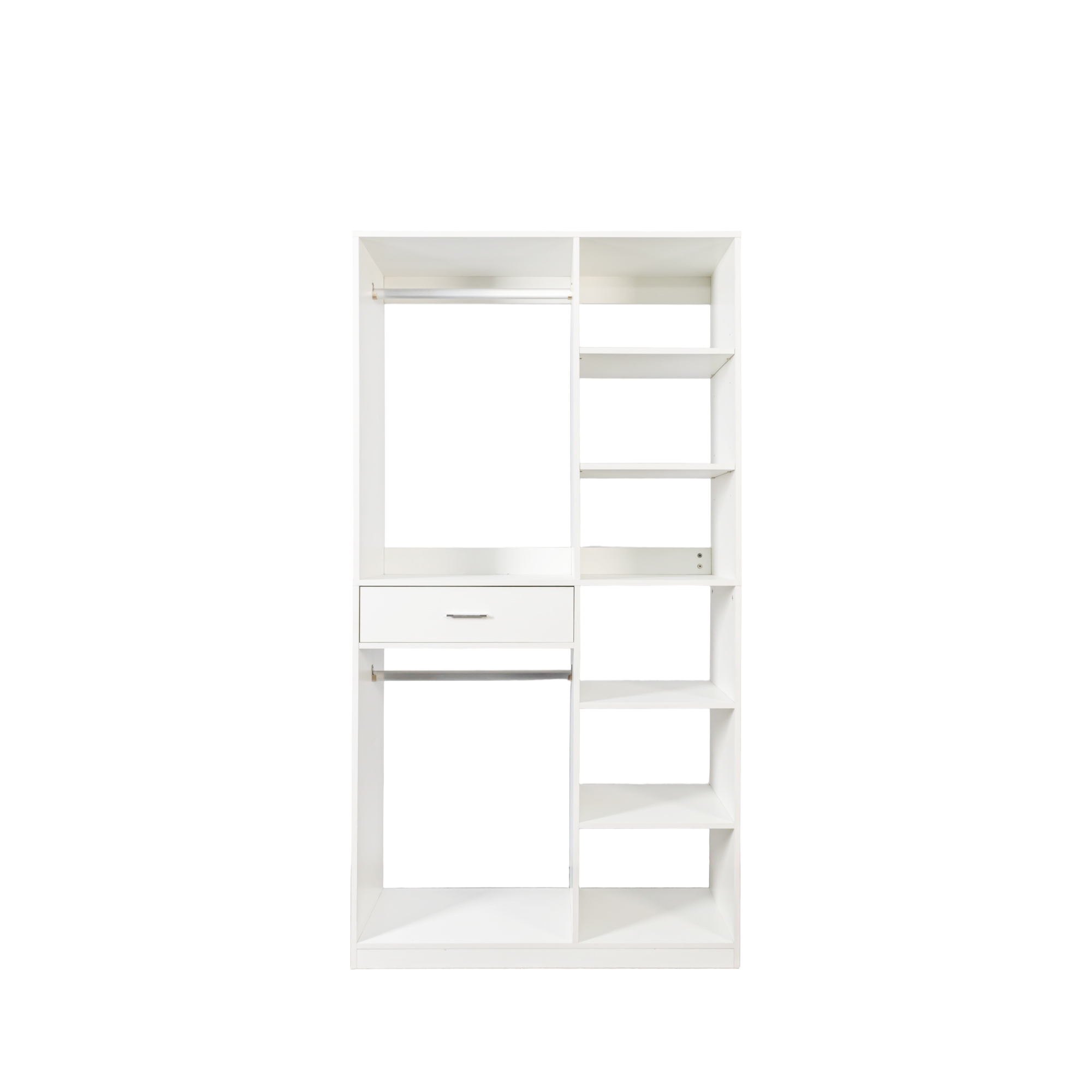 Product Name:Freestanding Closet System, Stand-Alone Wardrobe with 6 open Shelves,74.8'' Heigh Closetwith 1 Wood Drawers, Wood Walk-in Closet with 2 Hanging Rod, White