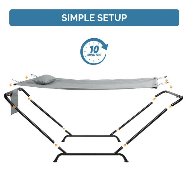 Freestanding Hammock With Stand, 550LBS Heavy Duty Outdoor Hammock Bed With Soft Pillow & Storage Bag, Grey
