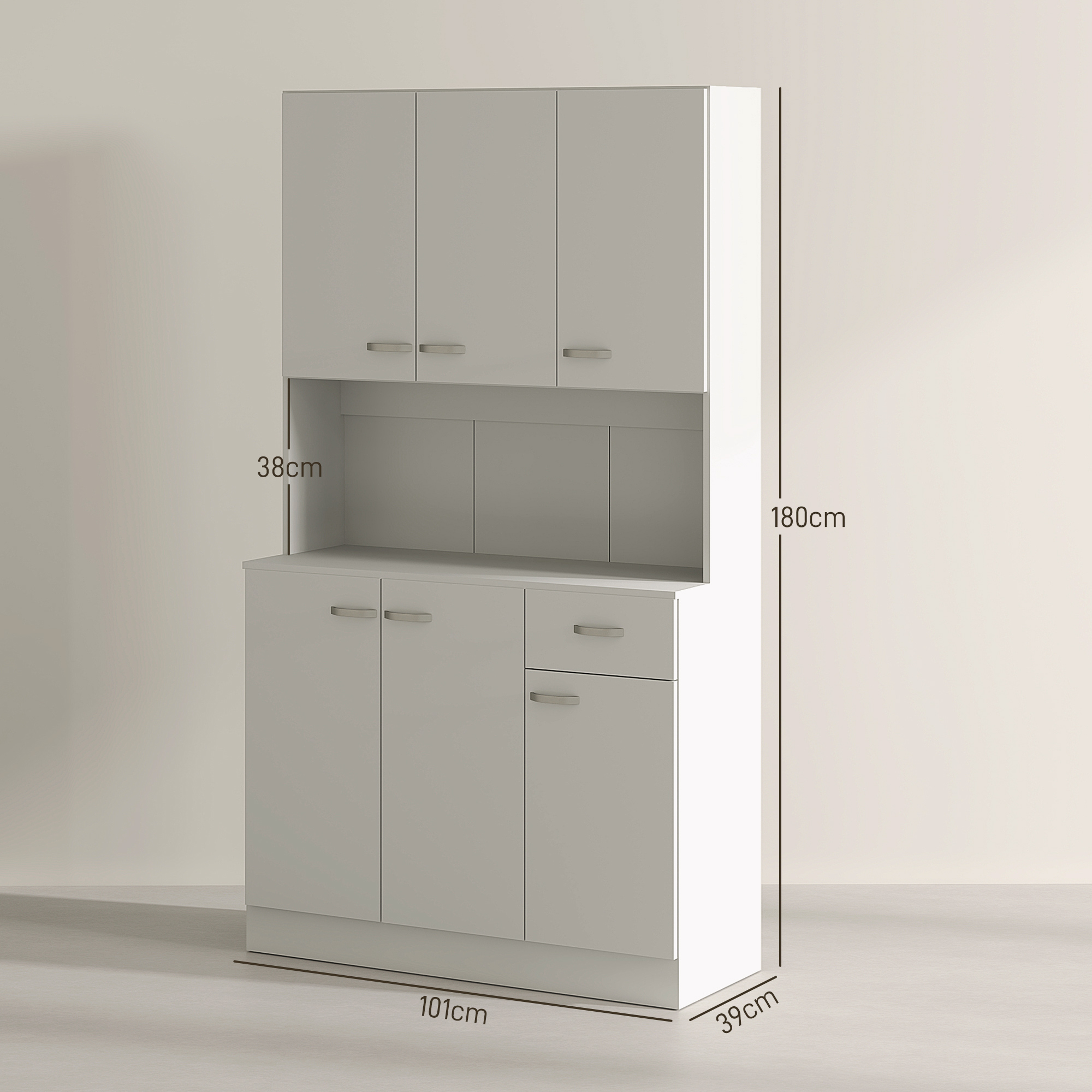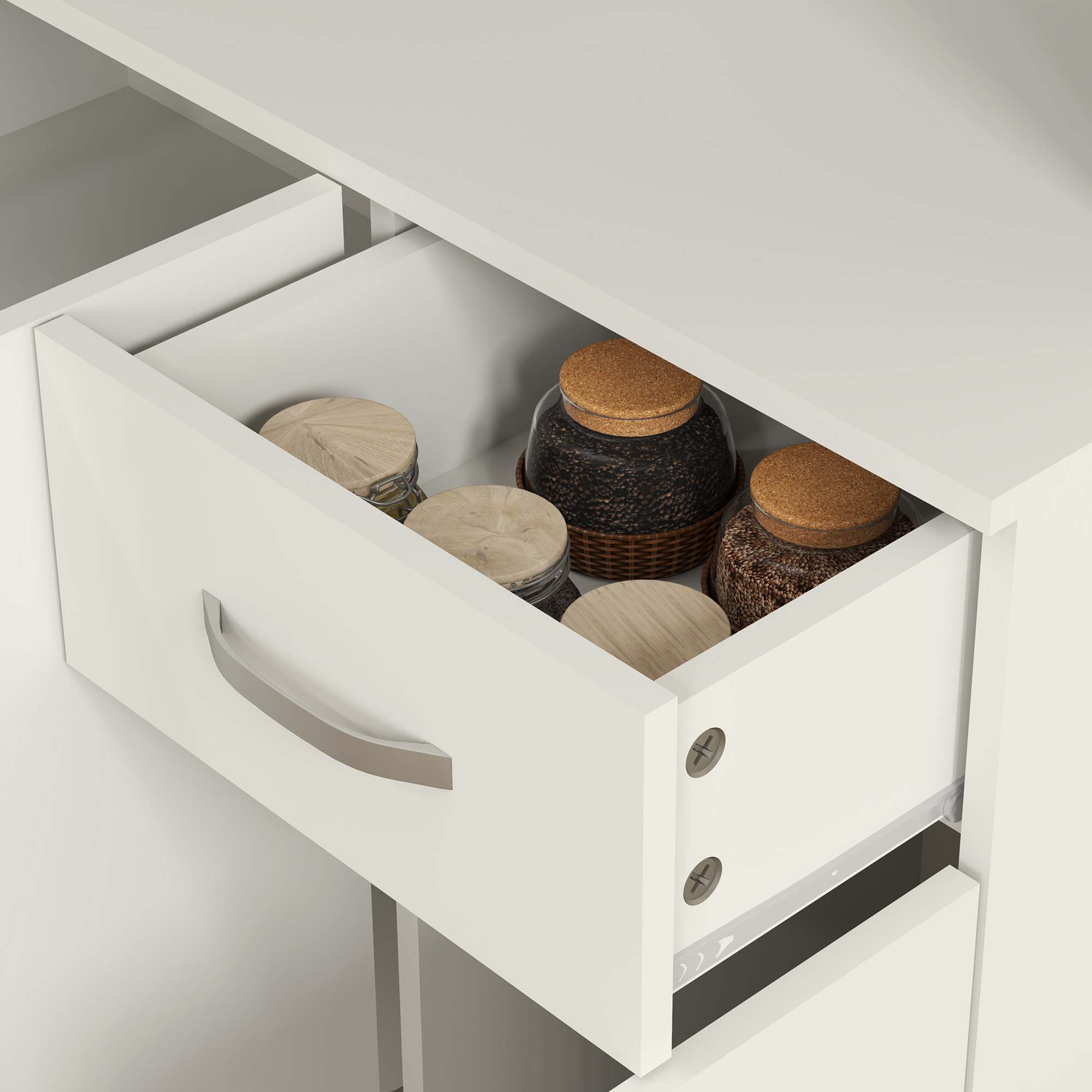 Transform your kitchen into a haven of style and functionality with the freestanding kitchen storage cabinet. This elegant piece maximizes space with its top and bottom cupboards, a drawer, and an open middle shelf. Each cupboard features adjustable shelves, accommodating items of all sizes. The sleek cream white finish and silver handles seamlessly blend with modern interiors, while the anti-tip design ensures safety. Enjoy the harmony of a well-organized kitchen, where every morning begins with ease.