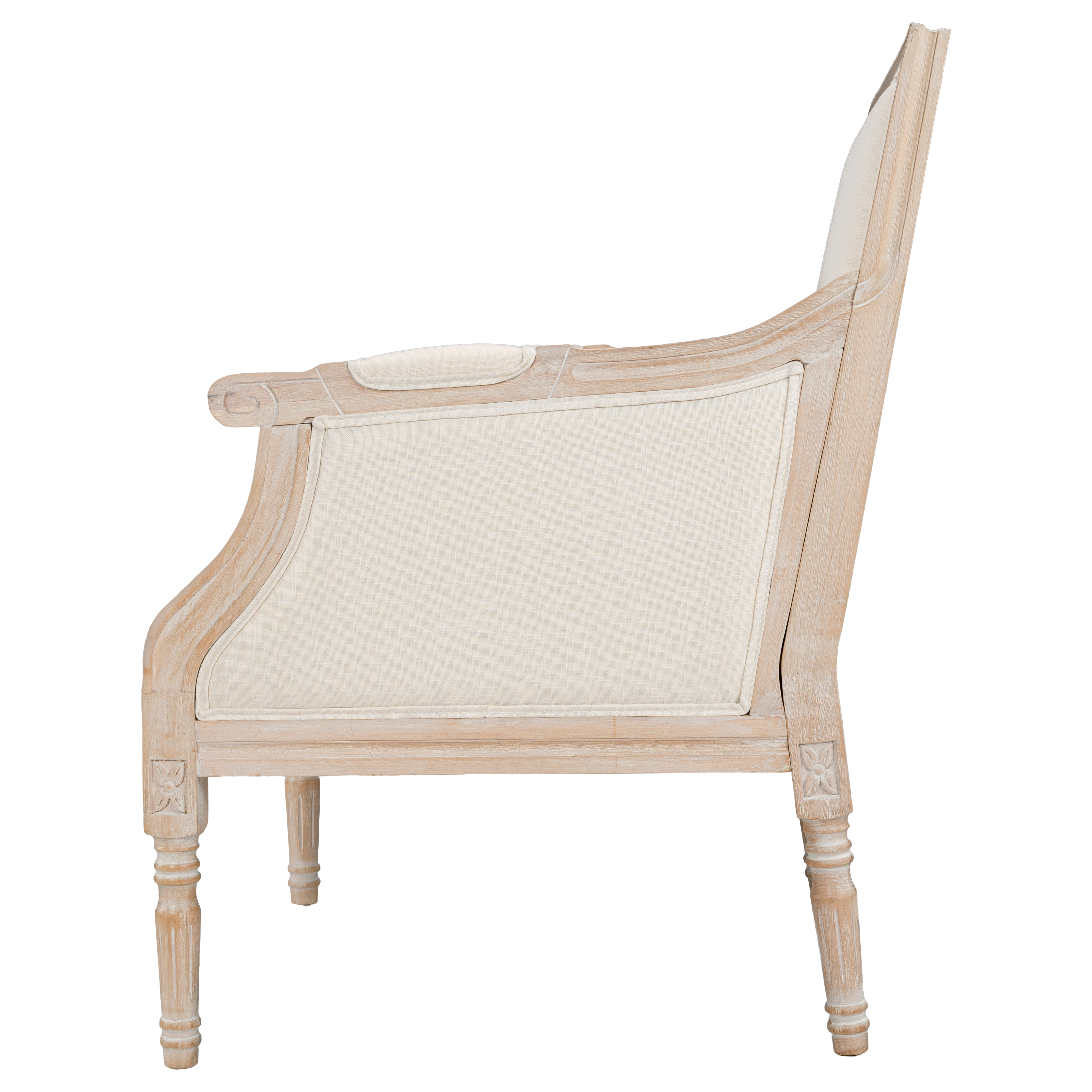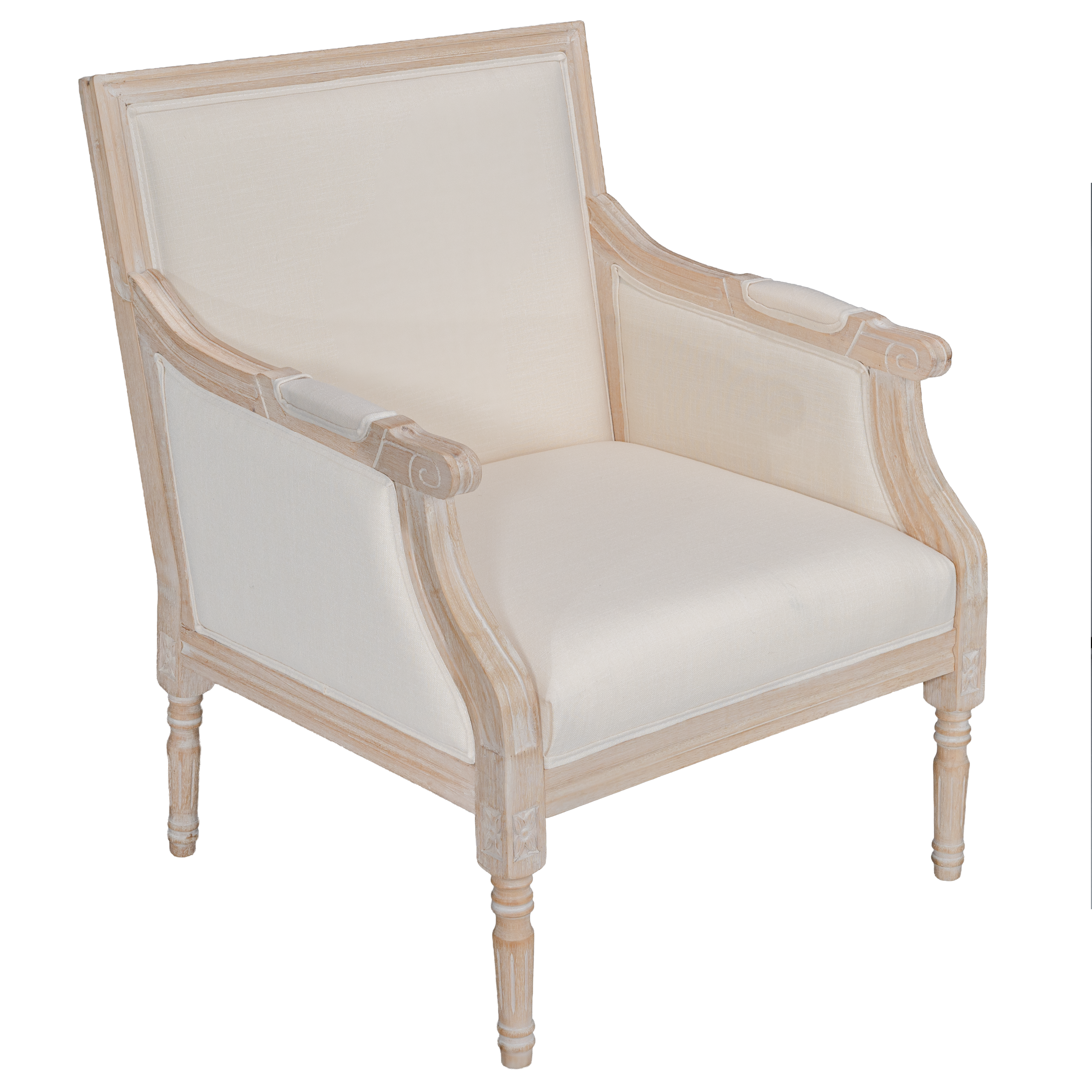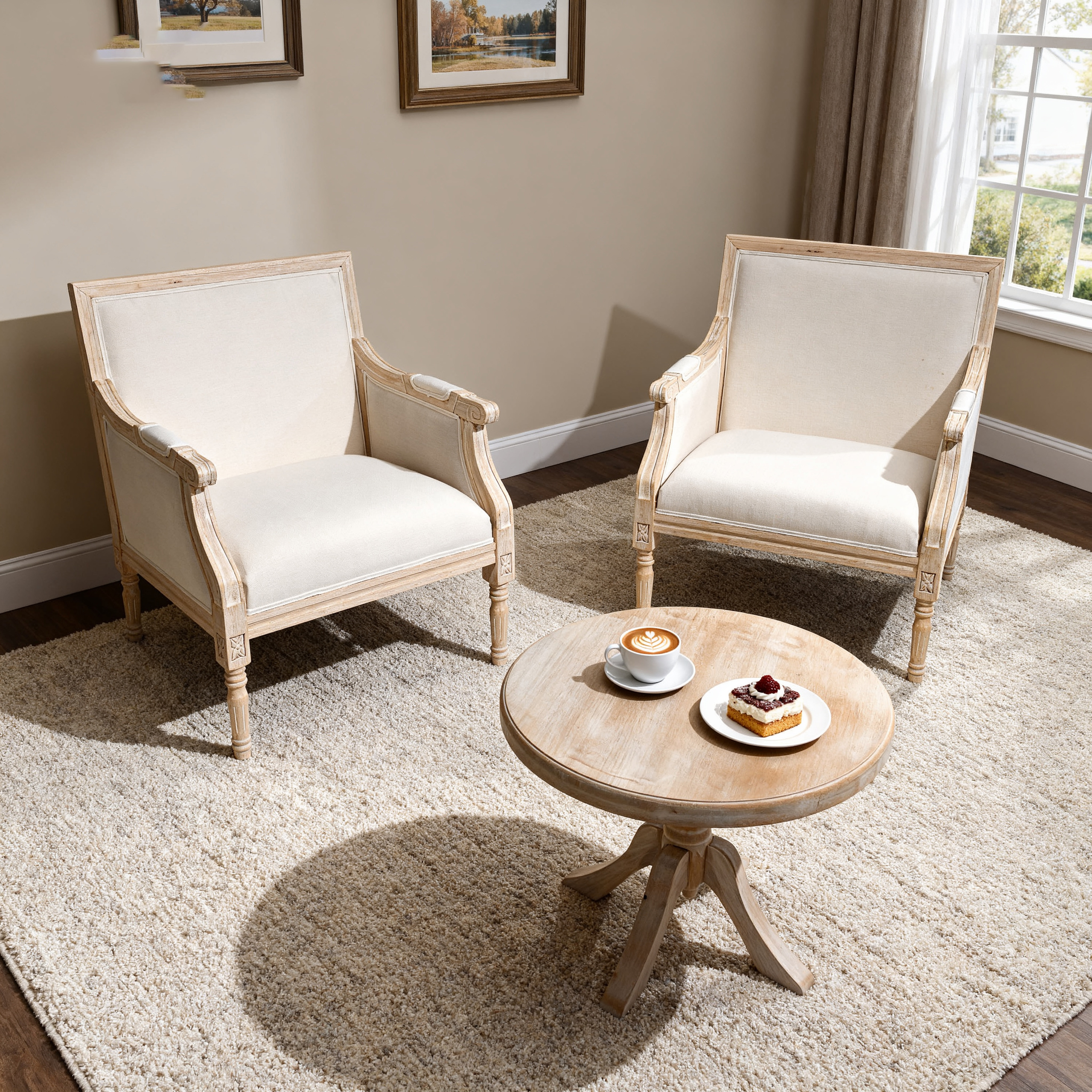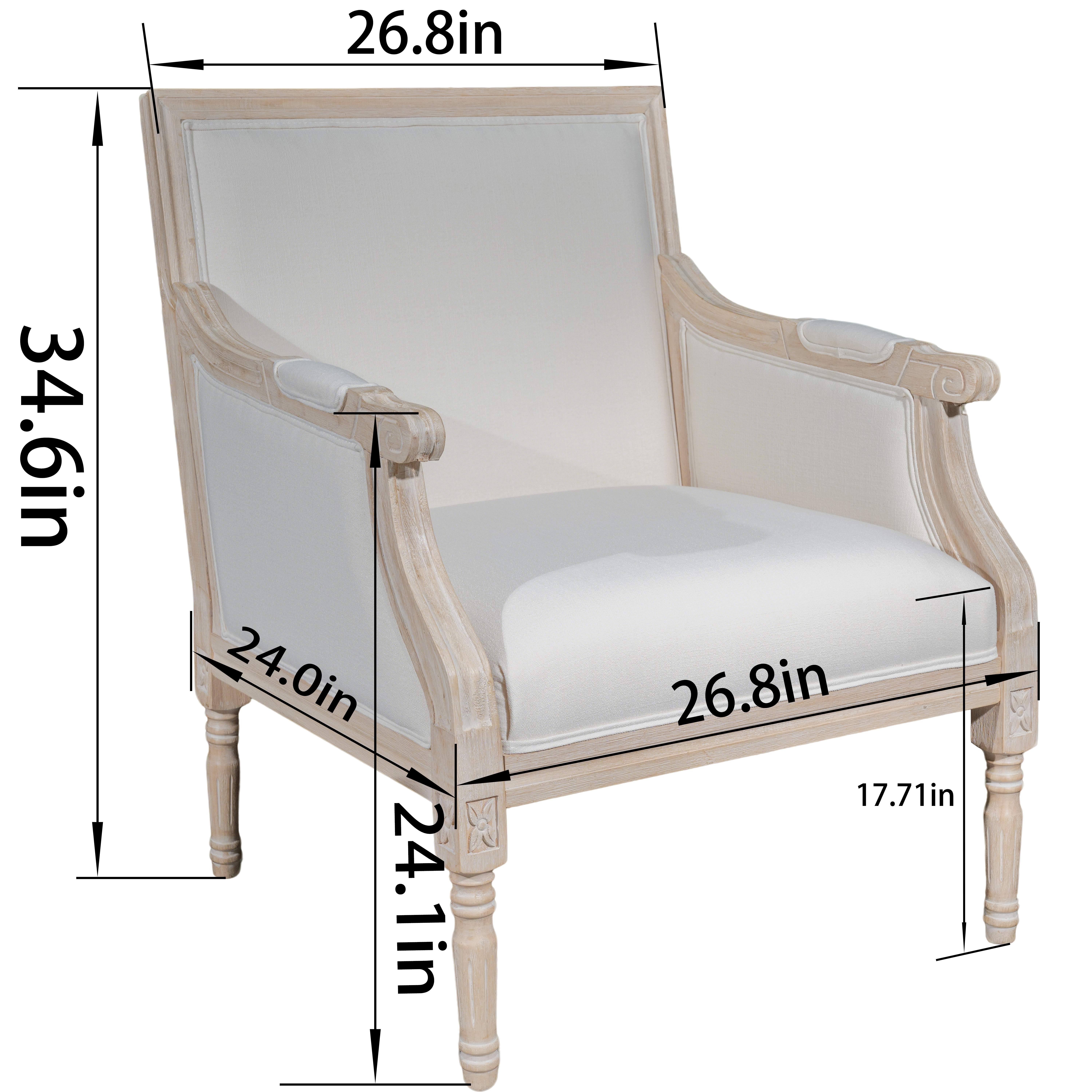 Product Name:French Accent Chair Traditional Wood Frame Linen Upholstery Distressed Finish Home Decor, Single
