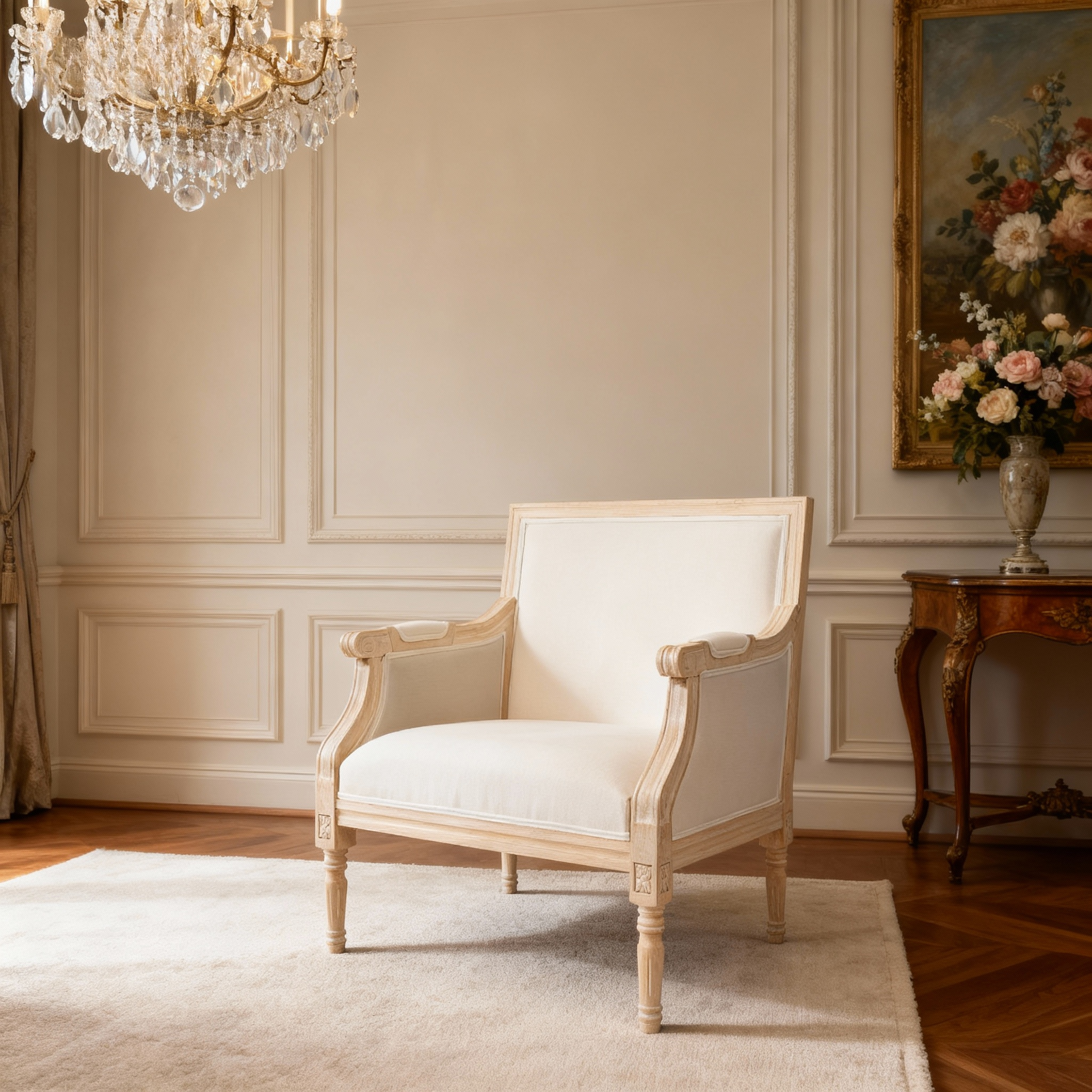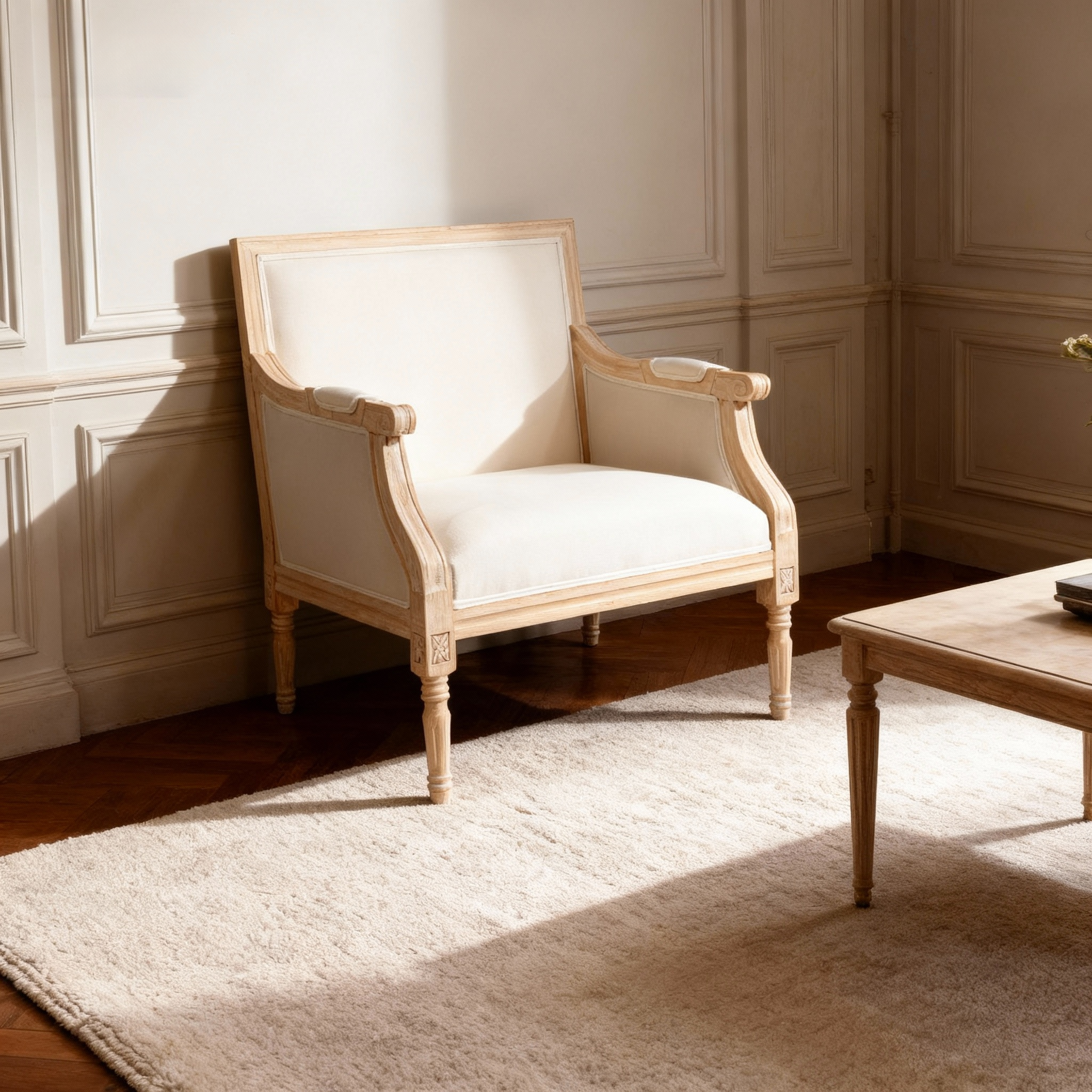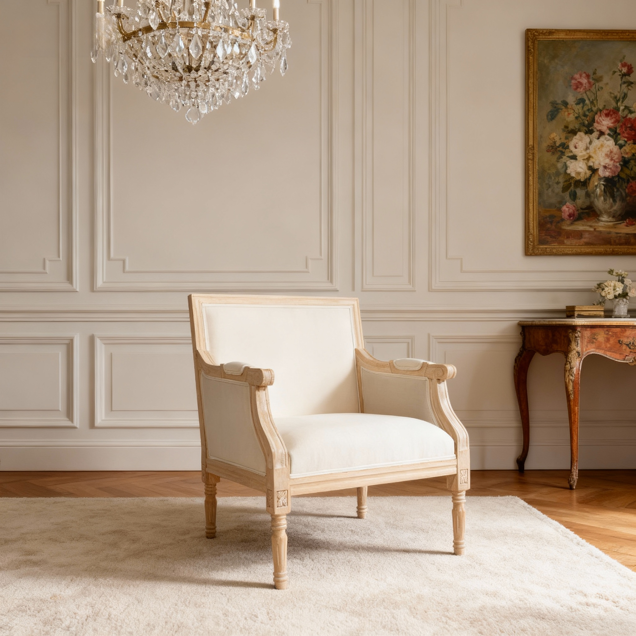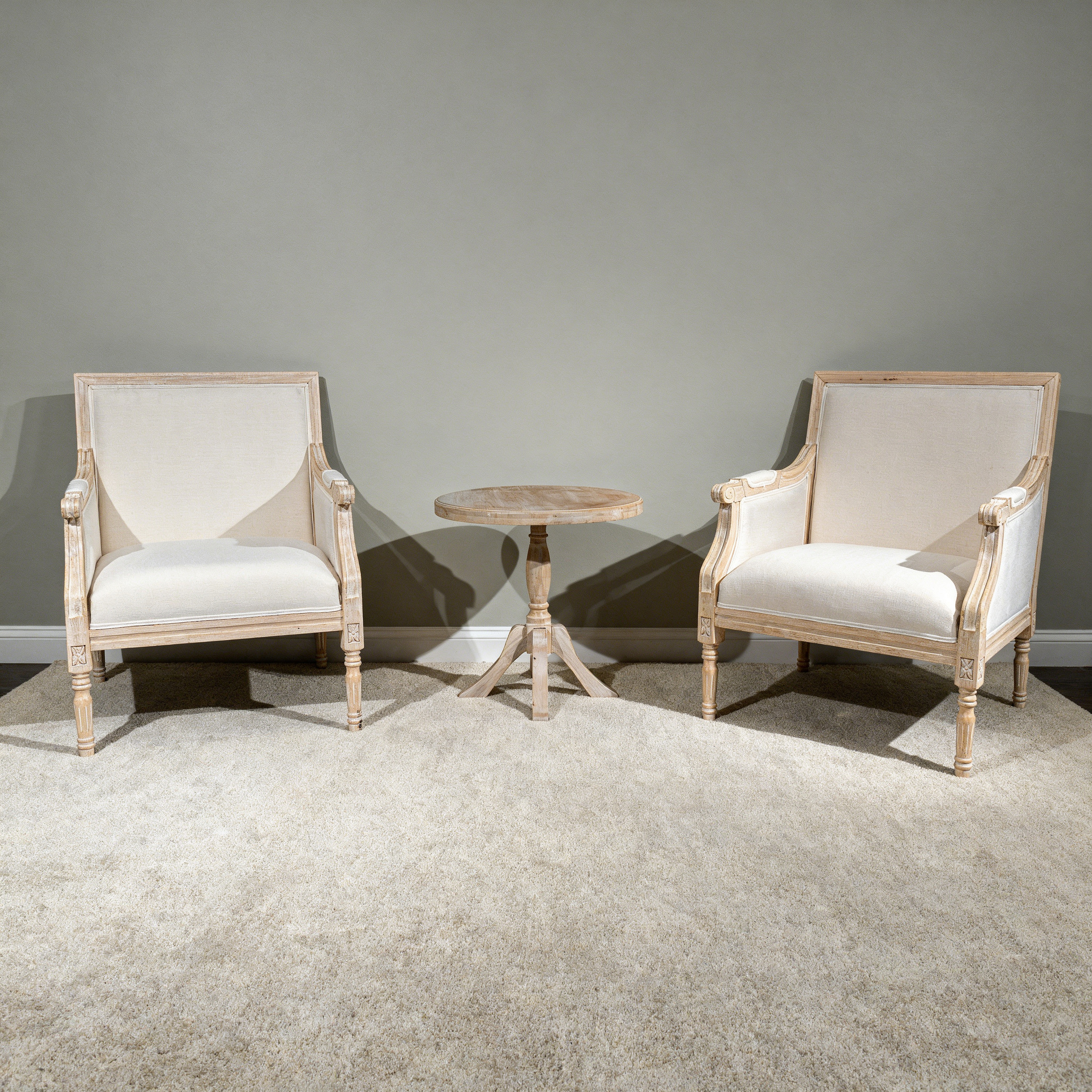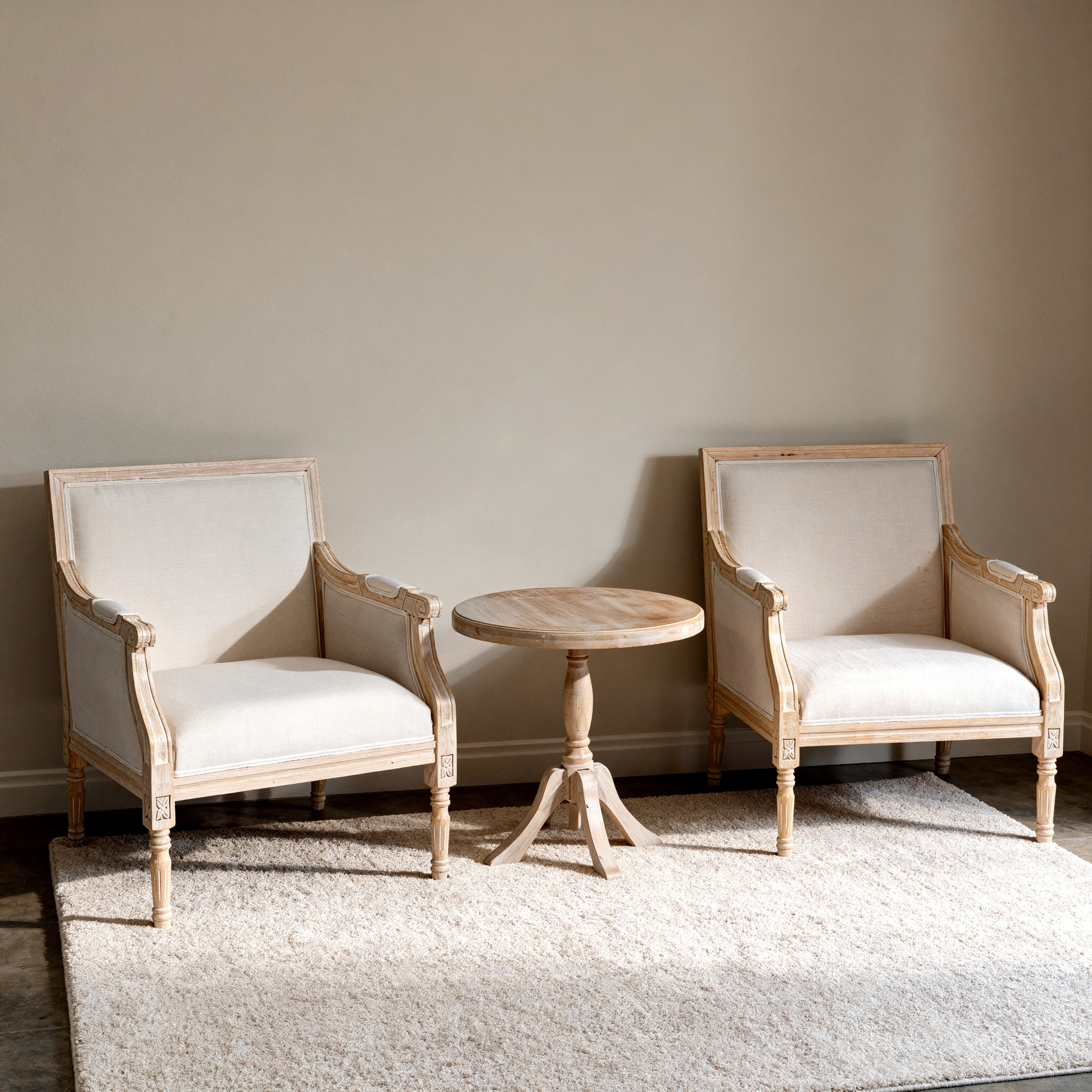 Product Name:French Accent Chair Traditional Wood Frame Linen Upholstery Distressed Finish Home Decor, Single