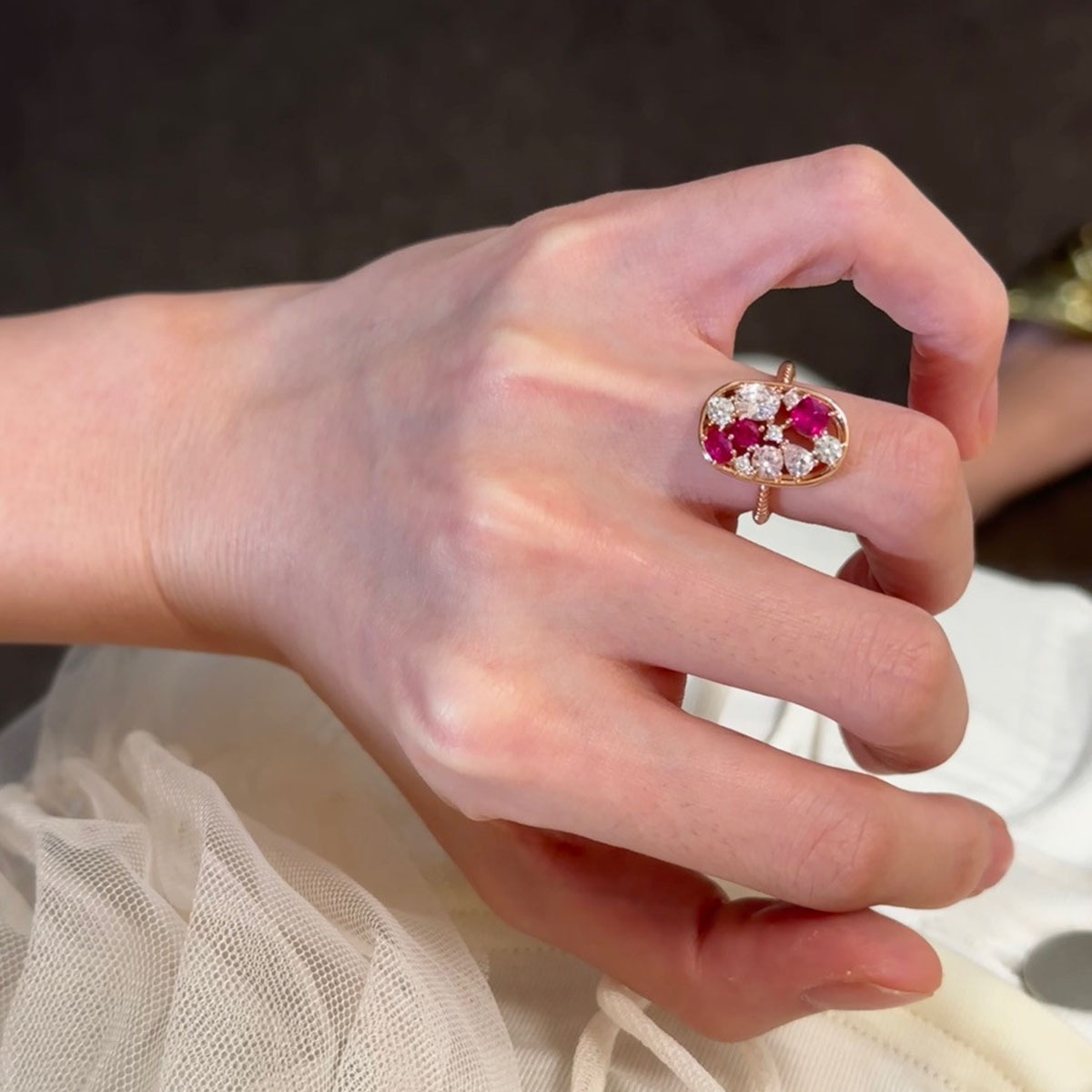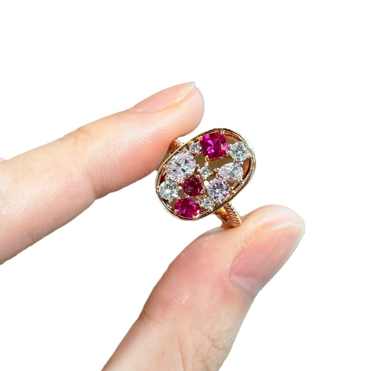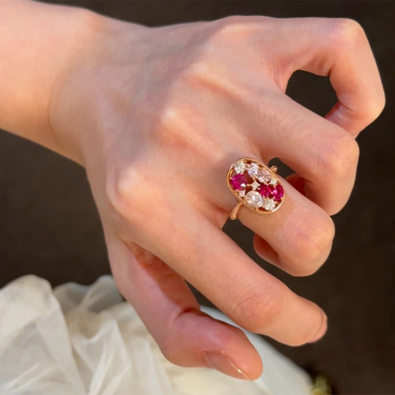 Color: white diamond red corundum ring
