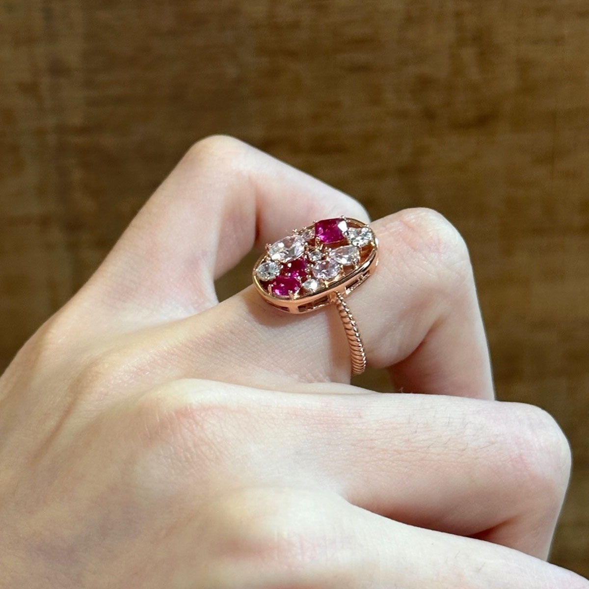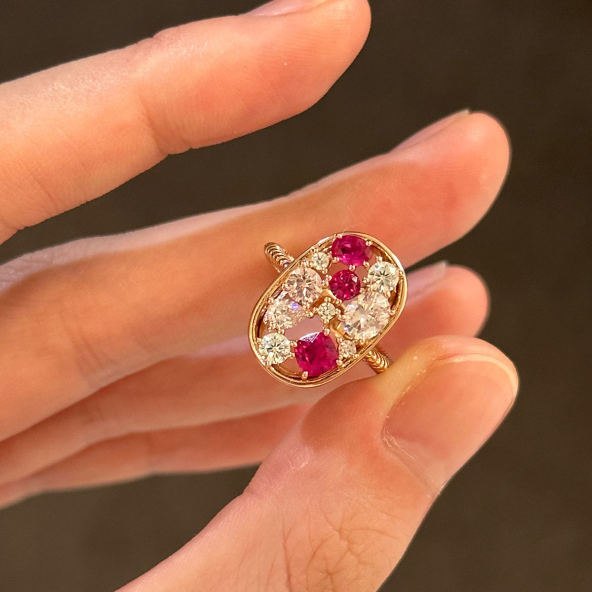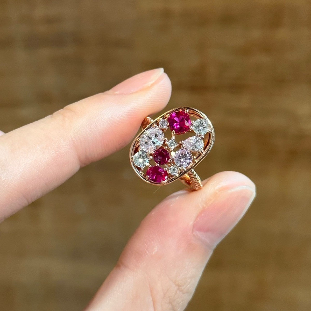Color: white diamond red corundum ring