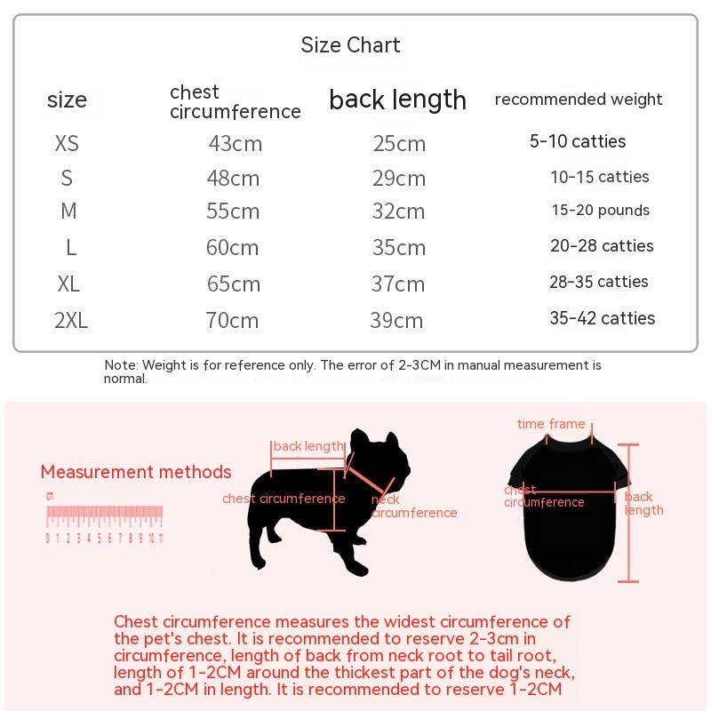 Size: XS (recommended weight 2.50 kg-5.00 kg, S (recommended weight 5.00 kg-7.50 kg, M (recommended weight 7.50 kg-10.00 kg, L (recommended weight 10.00 kg-14.00 kg, XL (recommended weight 14.00 kg-17.50 kg, 2XL (recommended weight 17.50 kg-21.00 kg