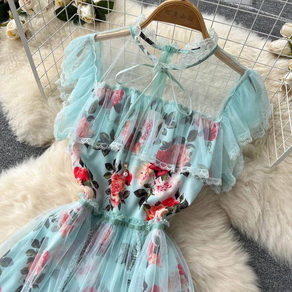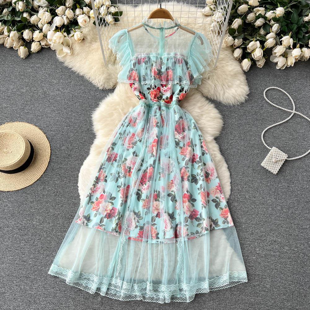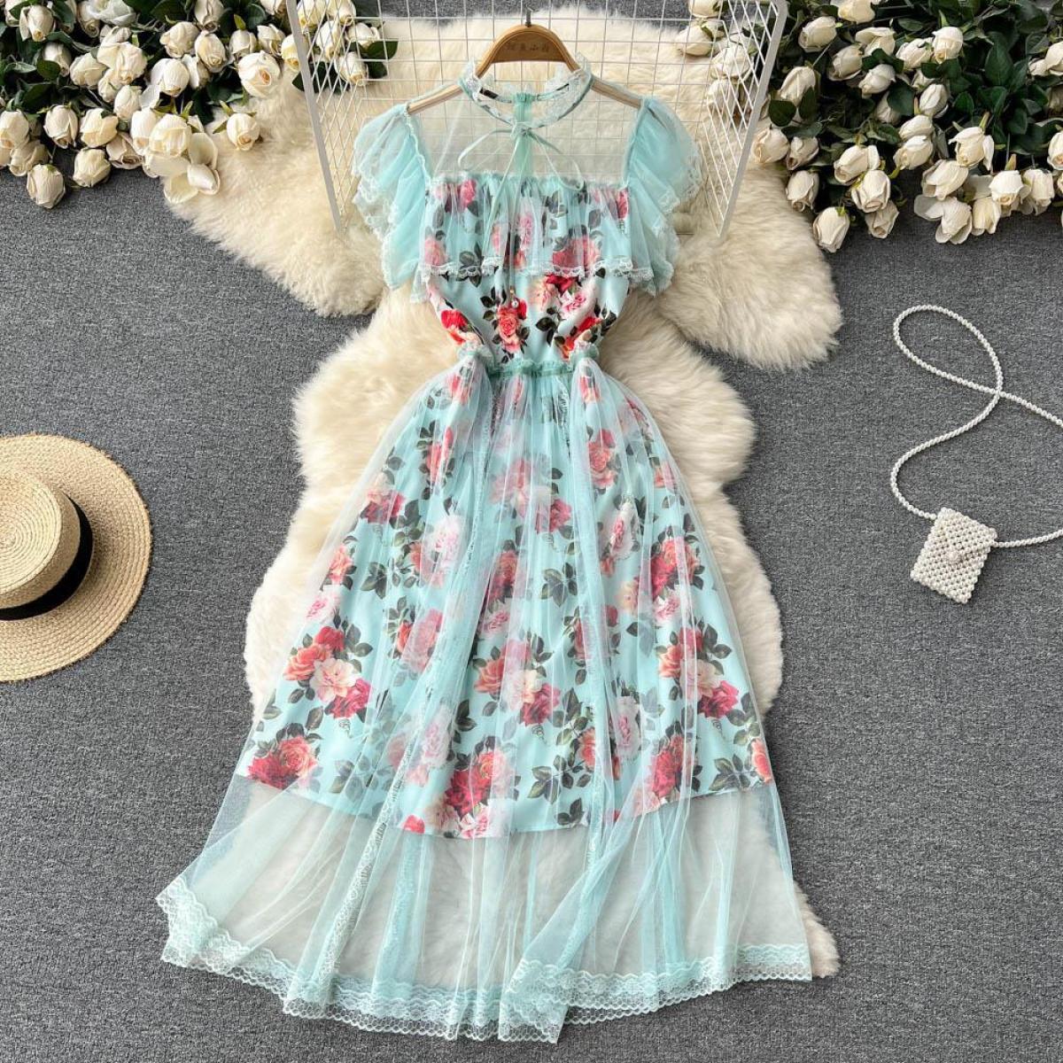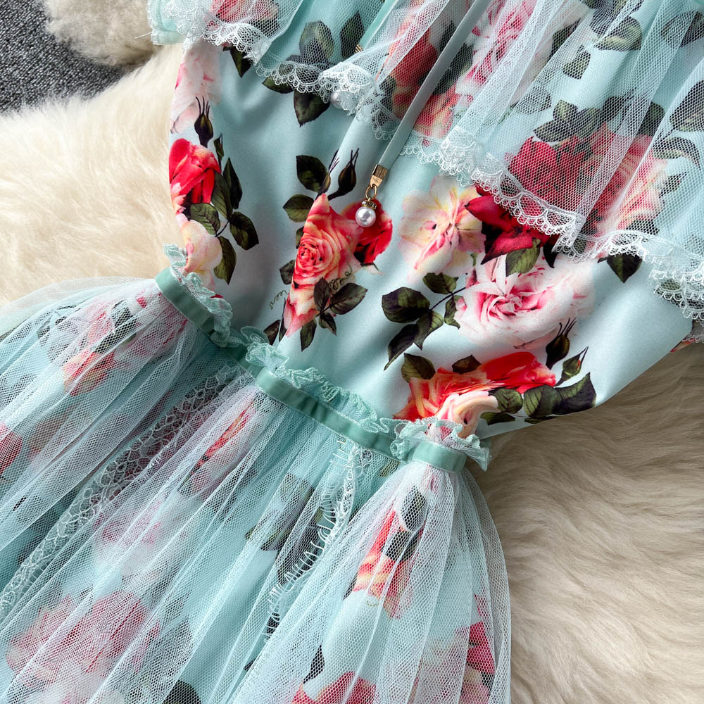 French First Love Flying Sleeve Floral Dress