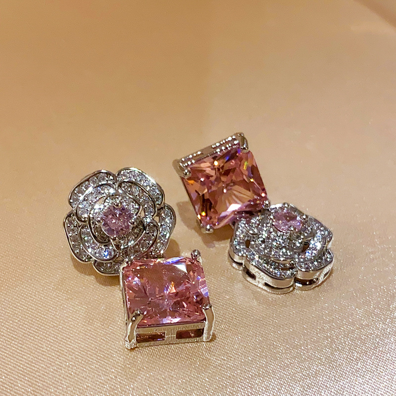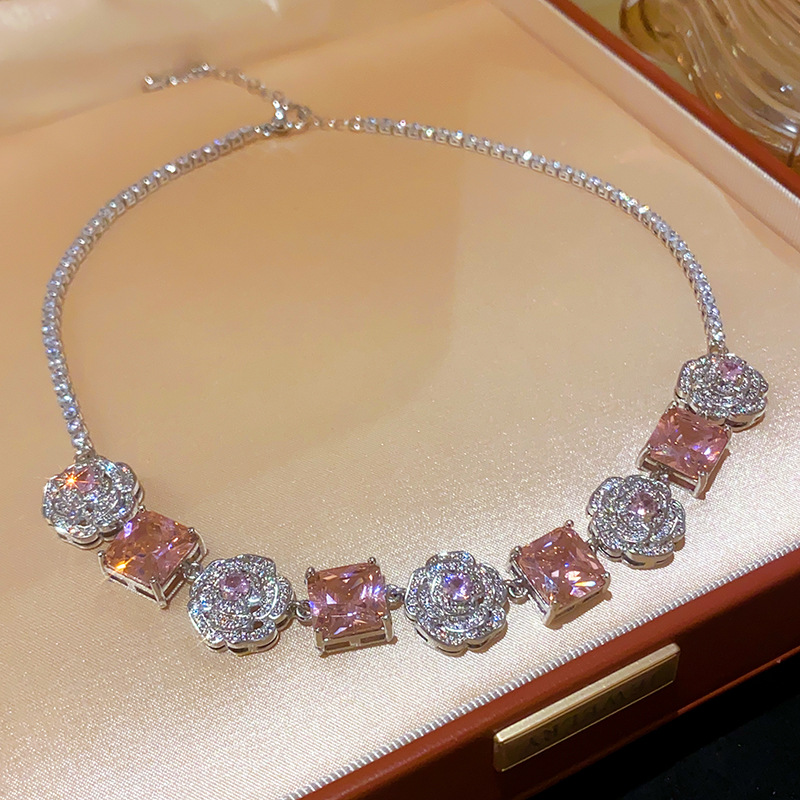 French Flower Square Zircon Necklace Light Luxury