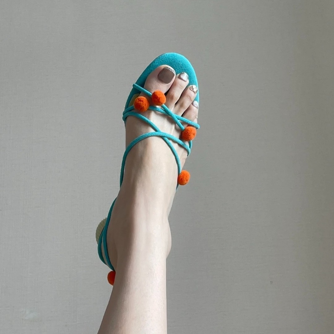 French Genuine Leather Niche Ball Lace-up High-heeled Sandals Thin Strap Open Toe