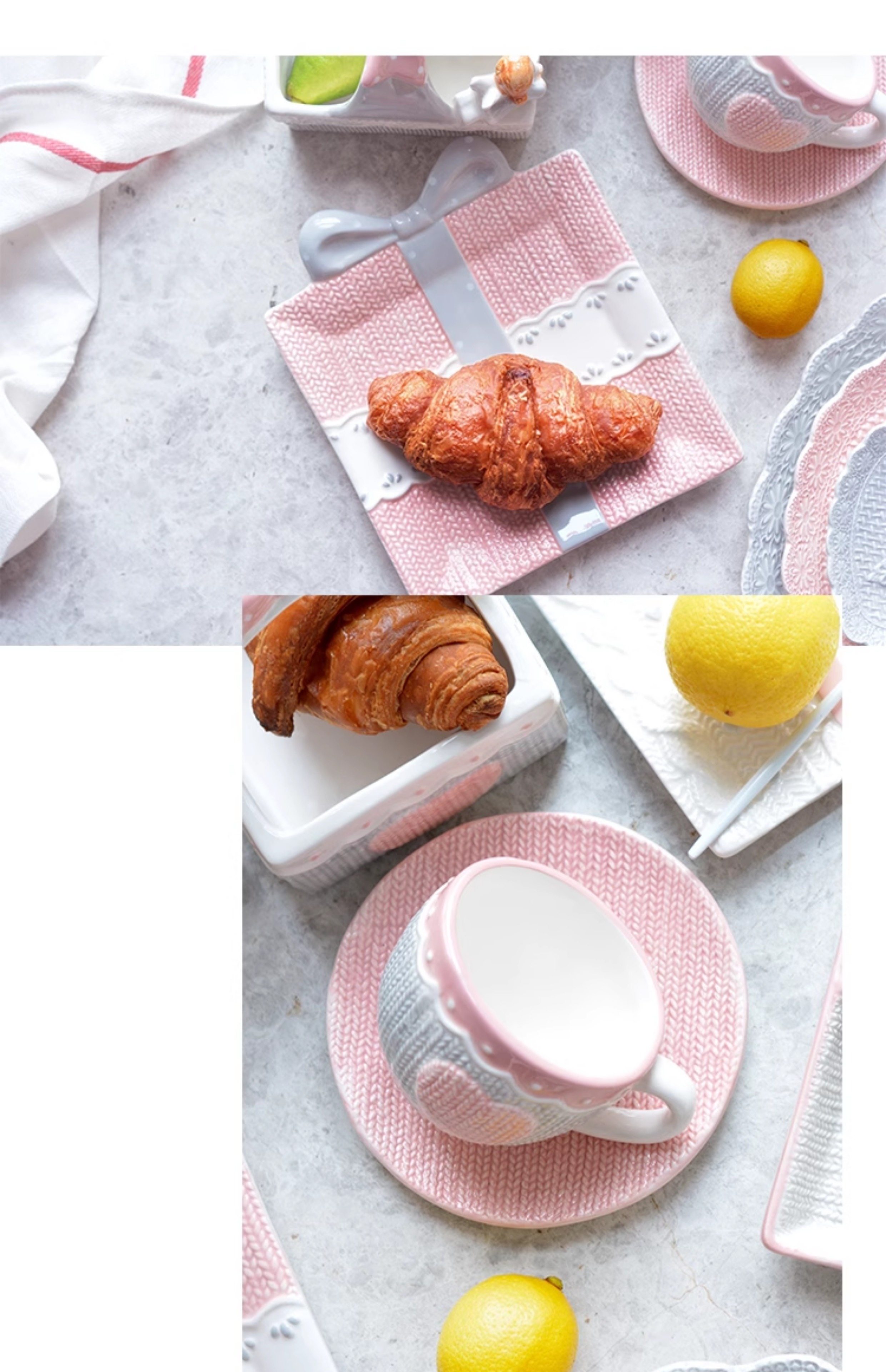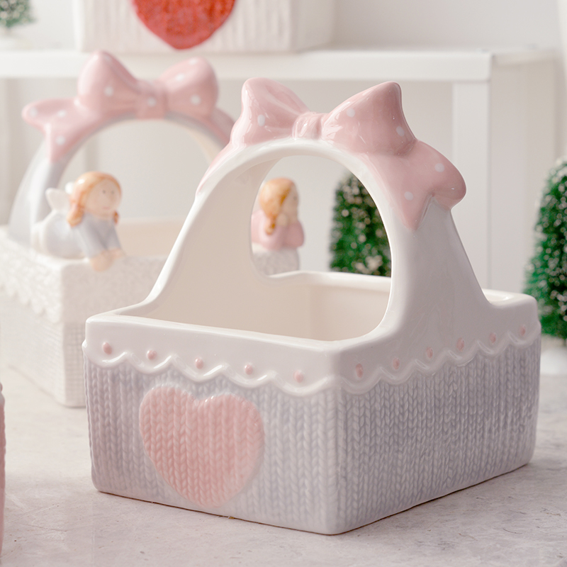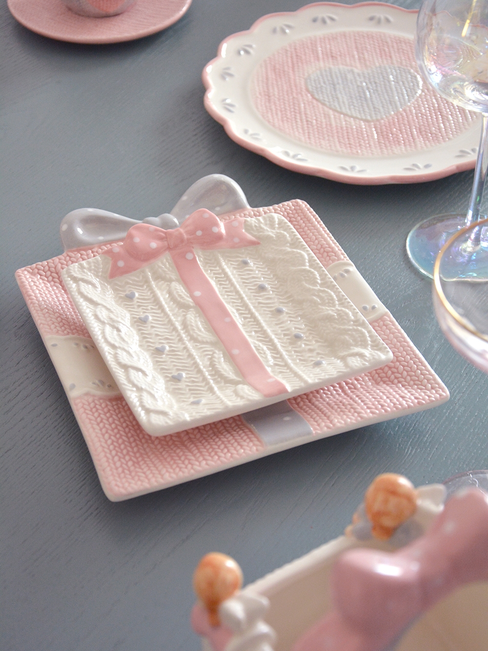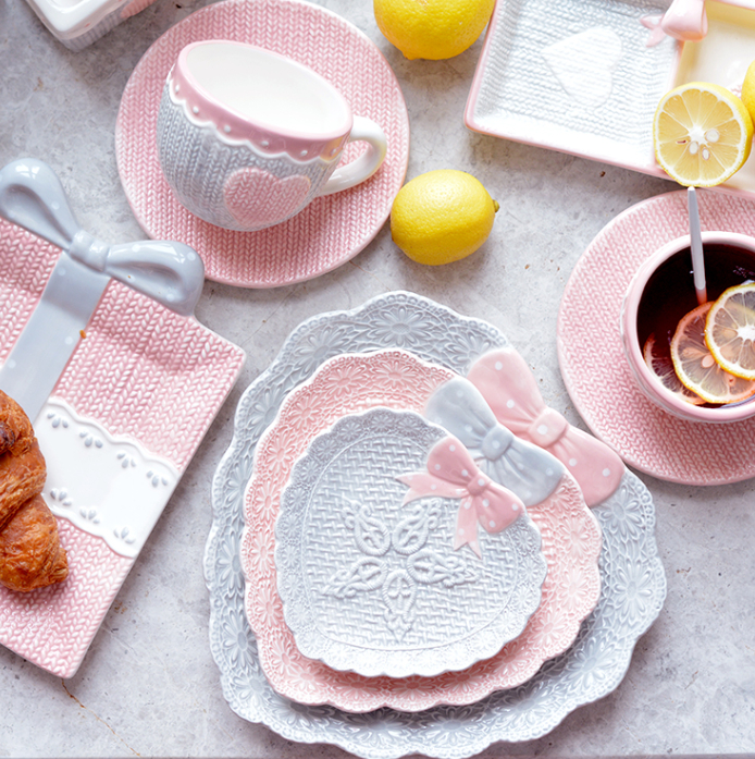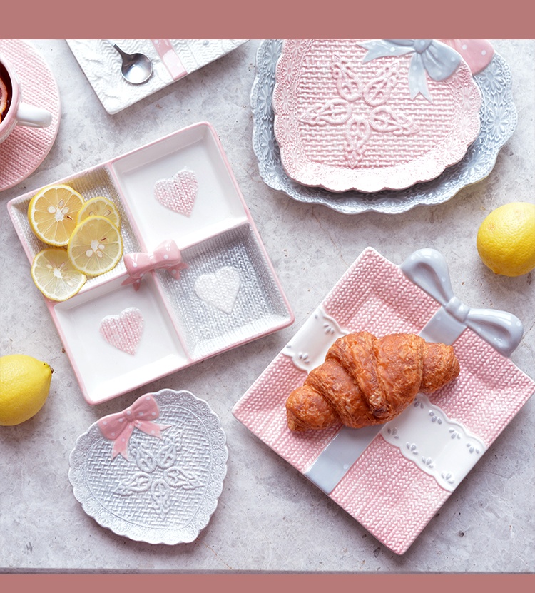 Colors: Small heart-shaped tray, medium heart-shaped tray, large heart-shaped tray, small gift box tray, medium gift box tray, small gray heart-shaped basket, multi-compartment tray, small pink heart-shaped basket; free shipping on any two items; hand sanitizer bottle; coffee cup and saucer; round tray; mug.