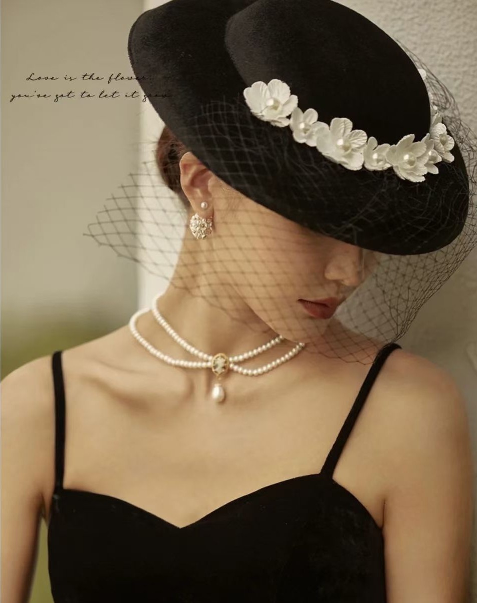 French Hepburn Vintage Gauze Bridal Top Hat