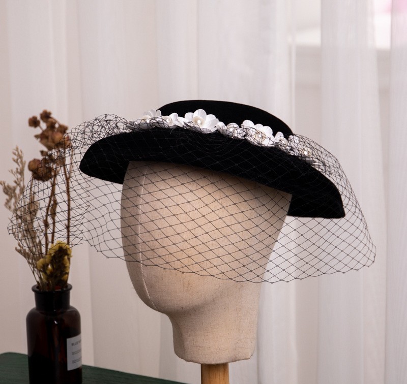 Color: C1206 Black flower Top Hat