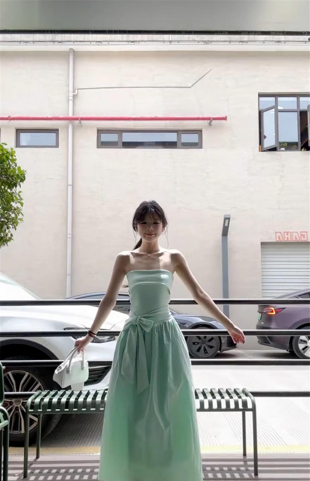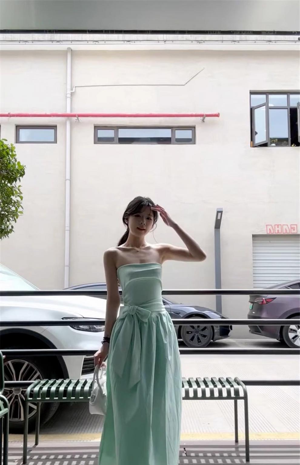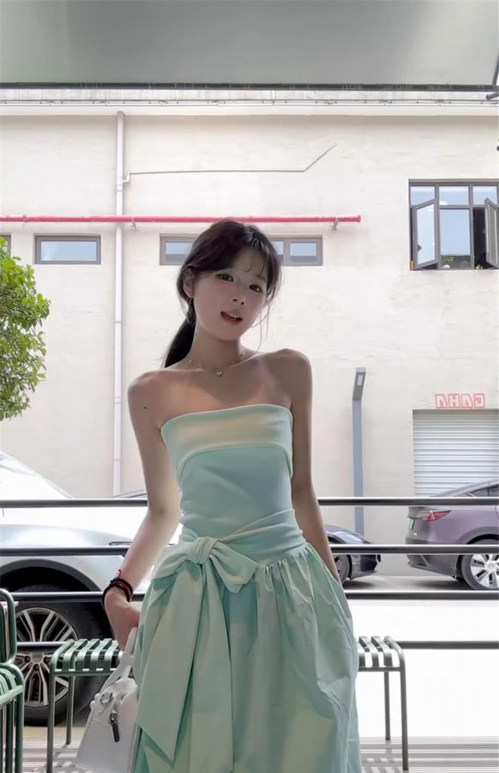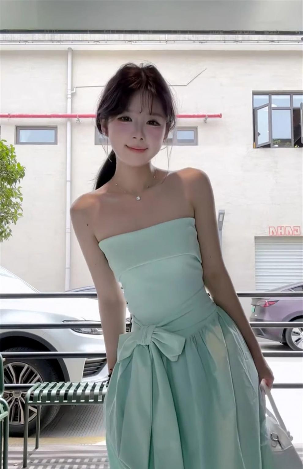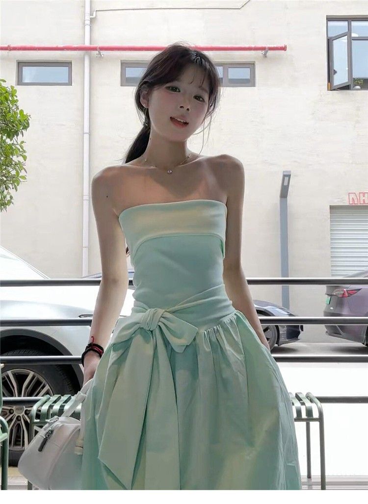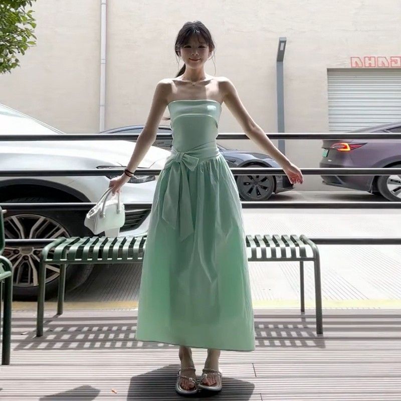 French Mint Green Strapless Beach Dress For Women