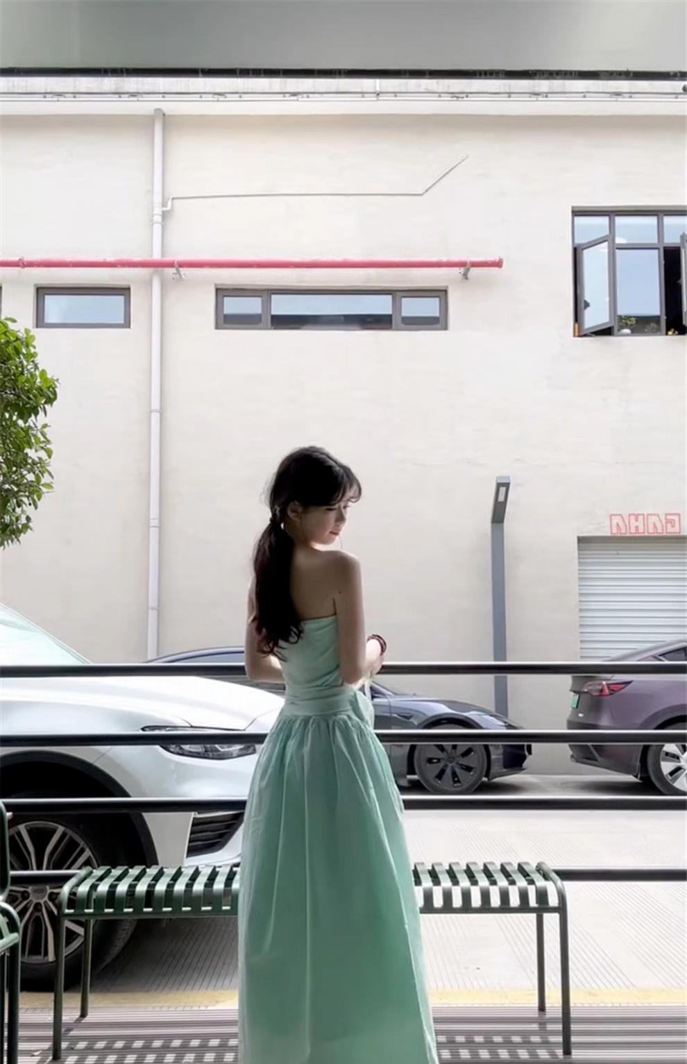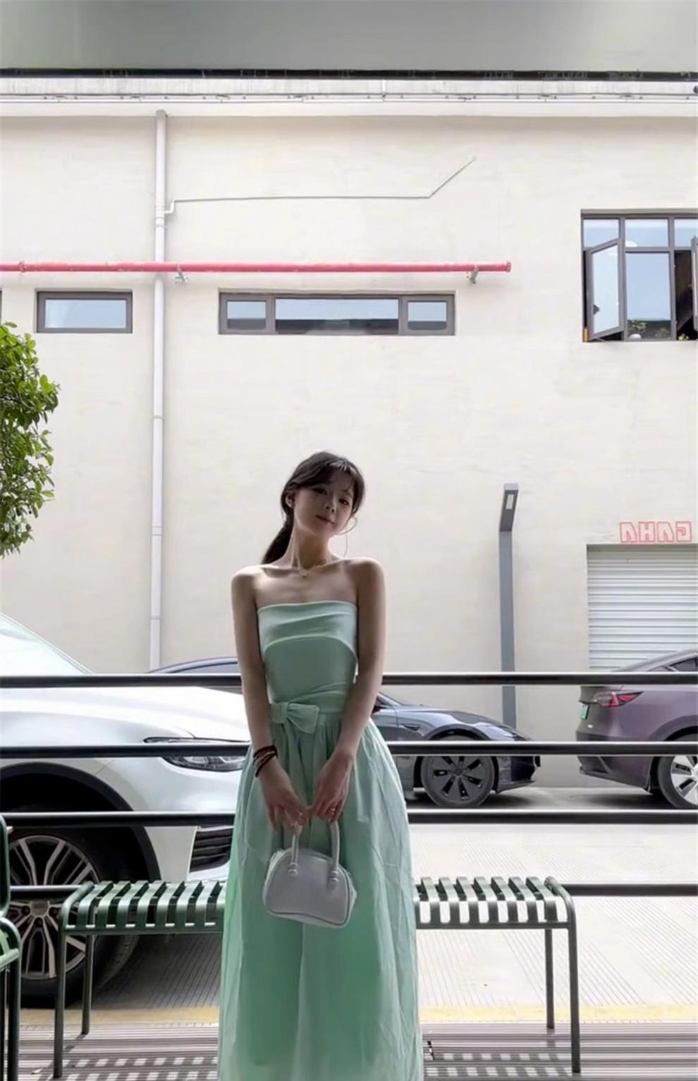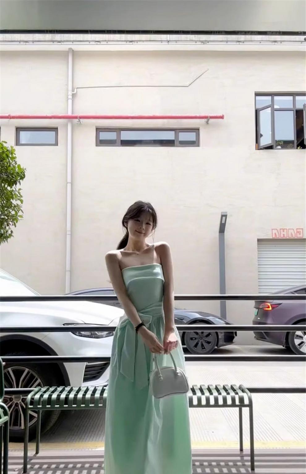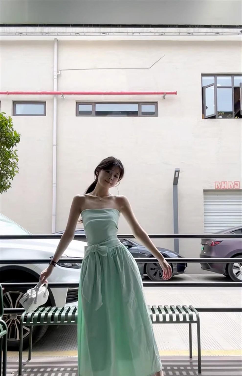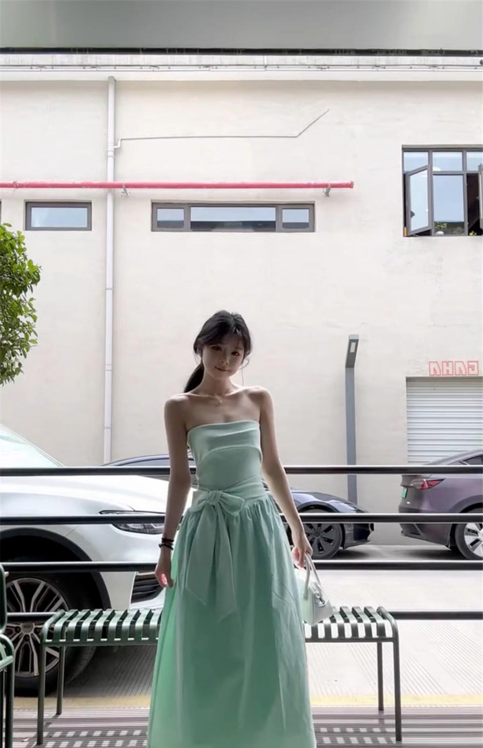 French Mint Green Strapless Beach Dress For Women