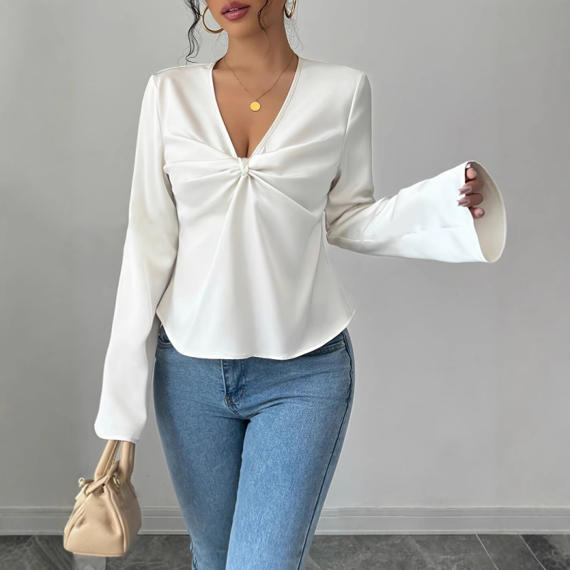 French Niche Design Twisted Satin Texture Shirt