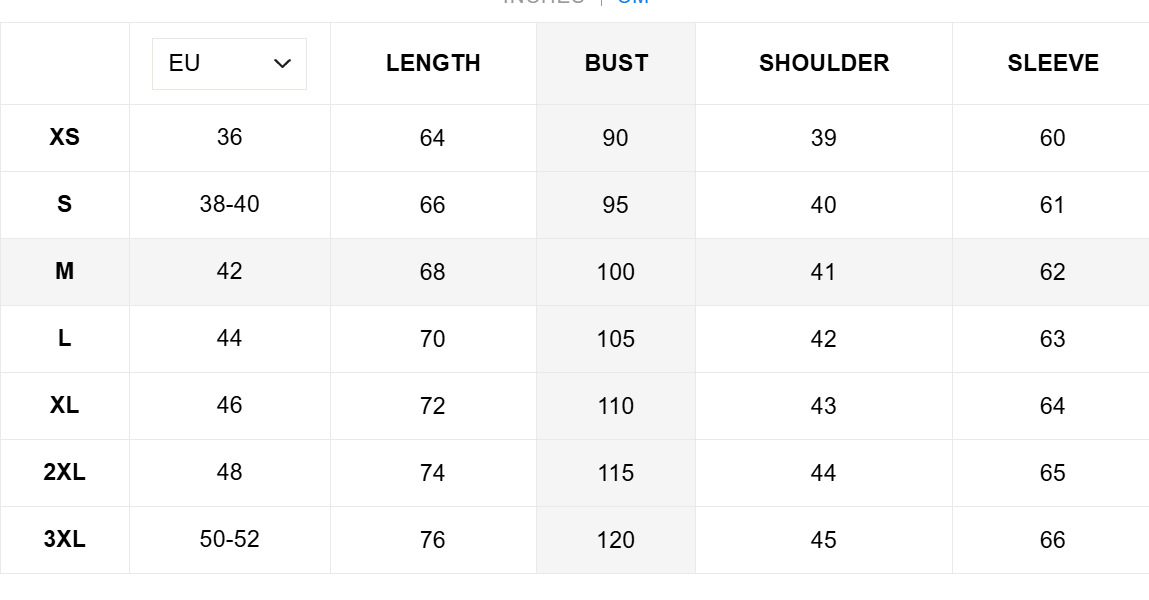 Sizes: XS, S, M, L, XL, XXL, XXXL