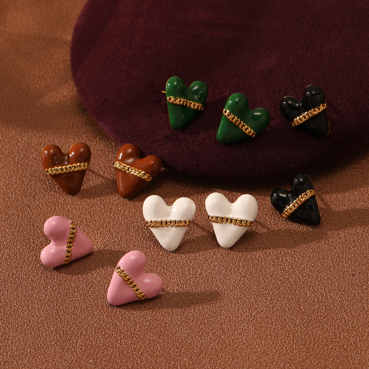 French Retro Colorful Oil Necklace Love Stainless Steel Earrings