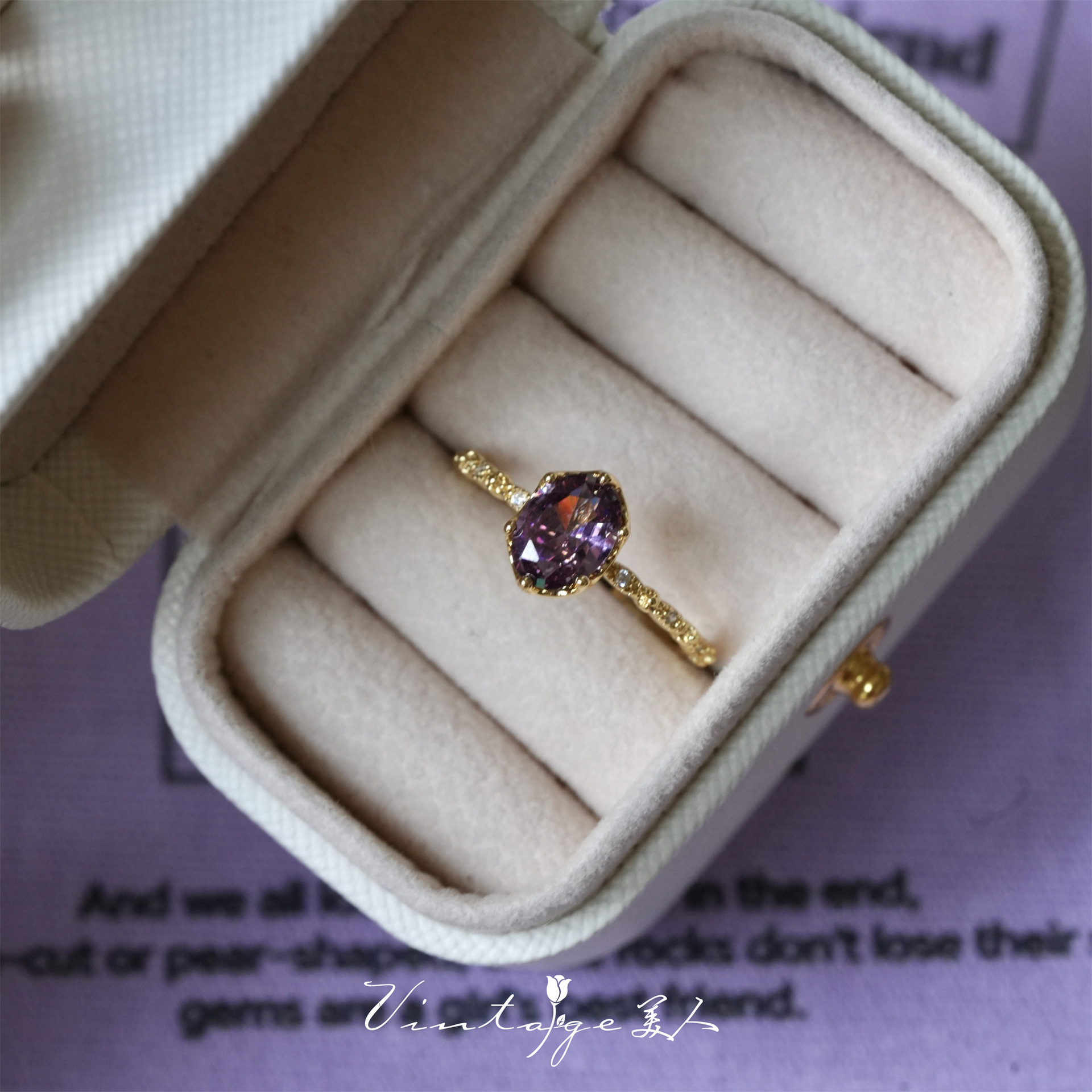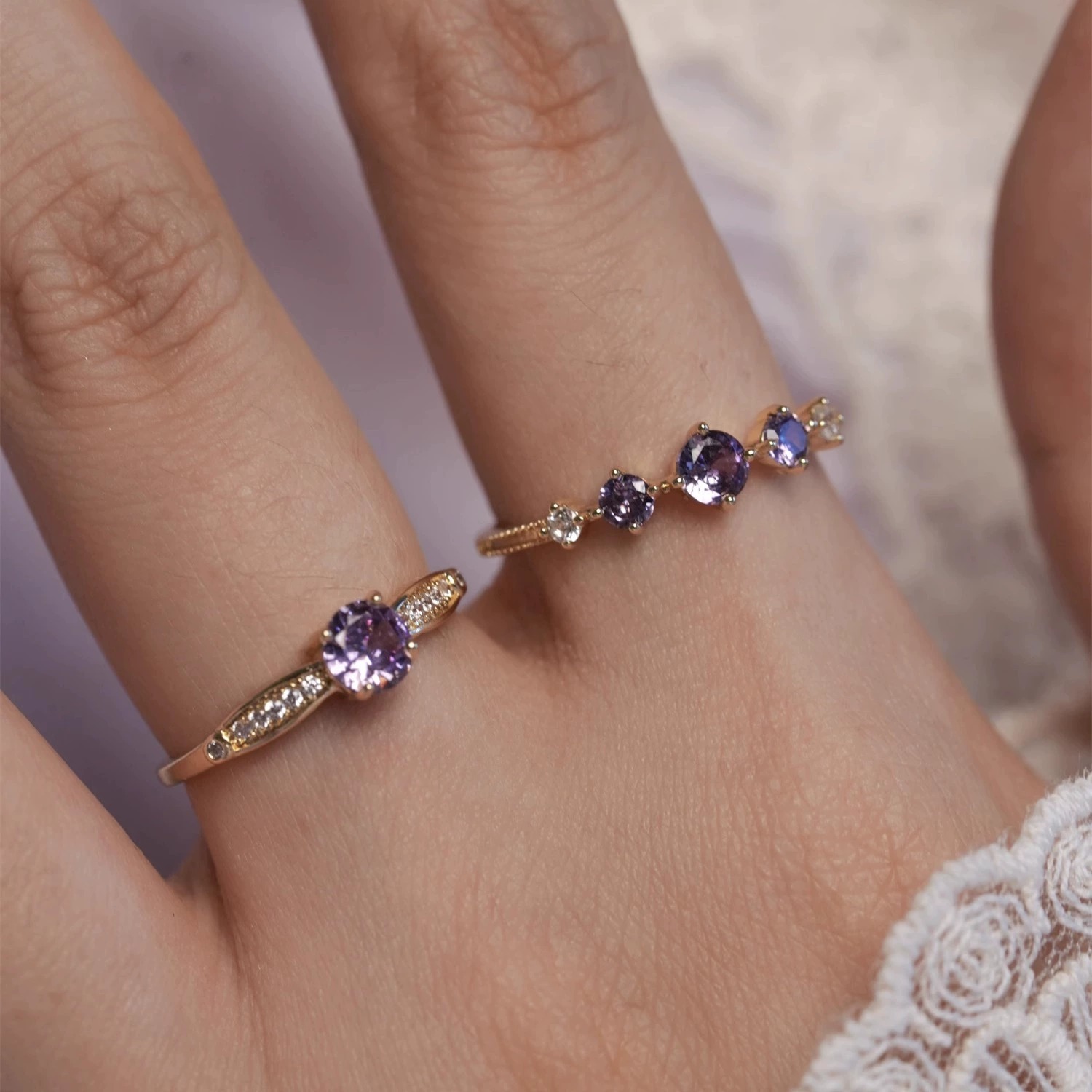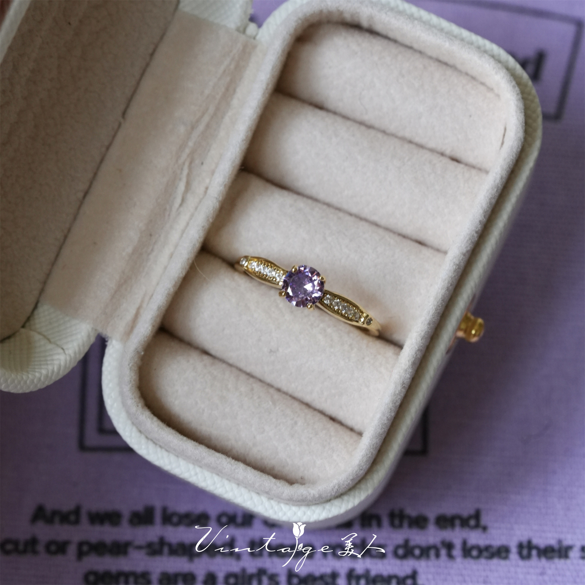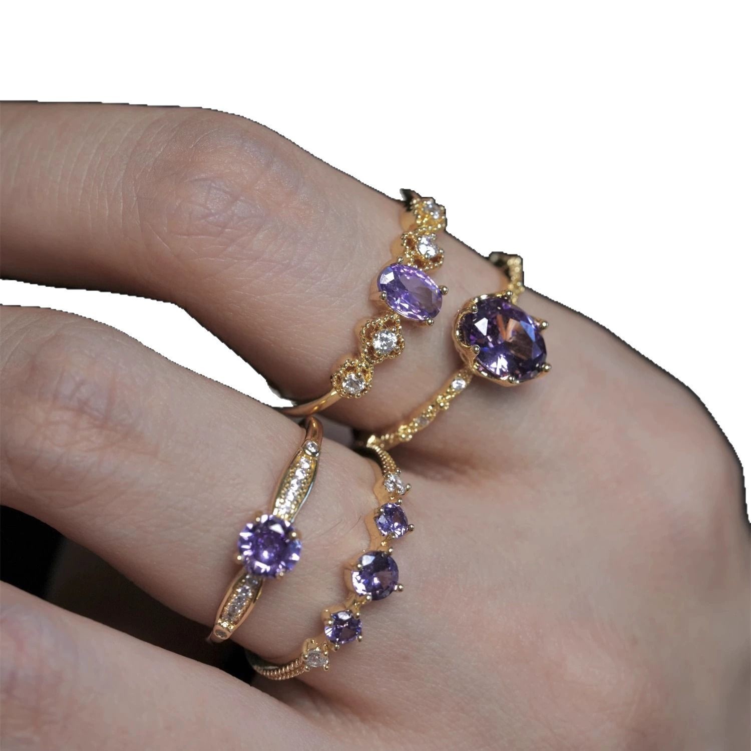 French Retro High-End Gentle Light Luxury Micro-Set Sparkling Purple Zircon Open Ring