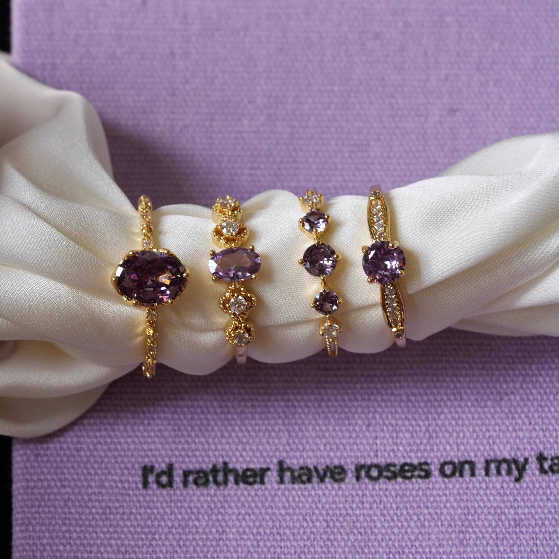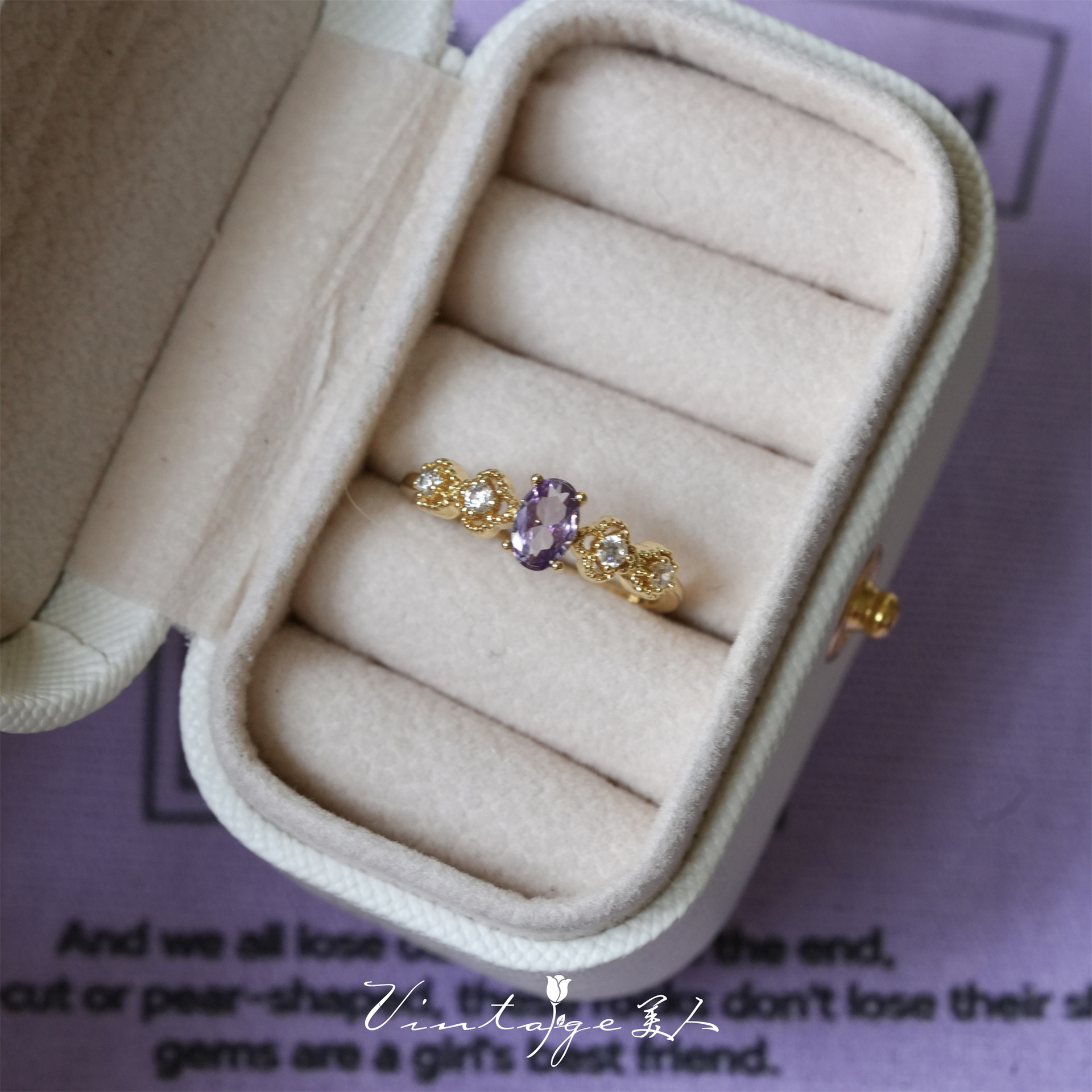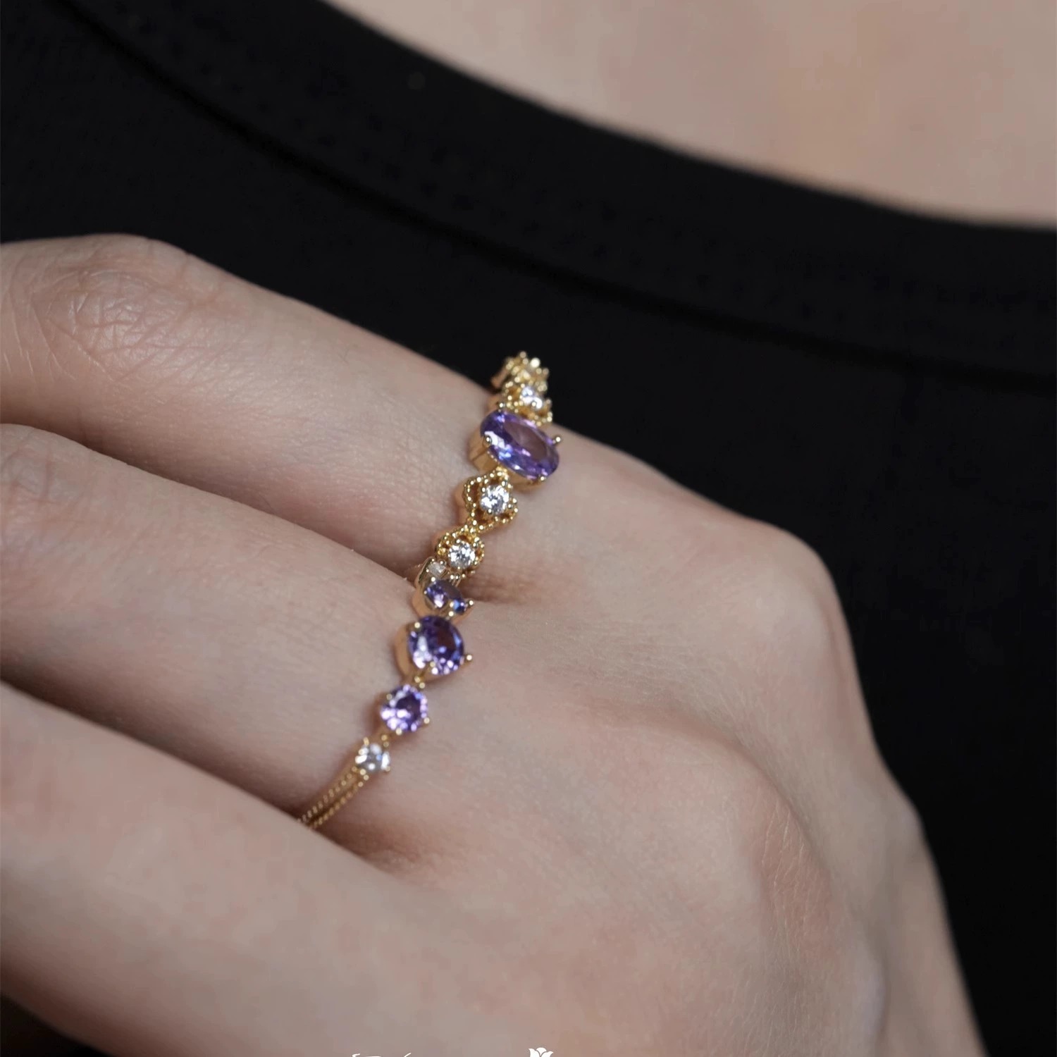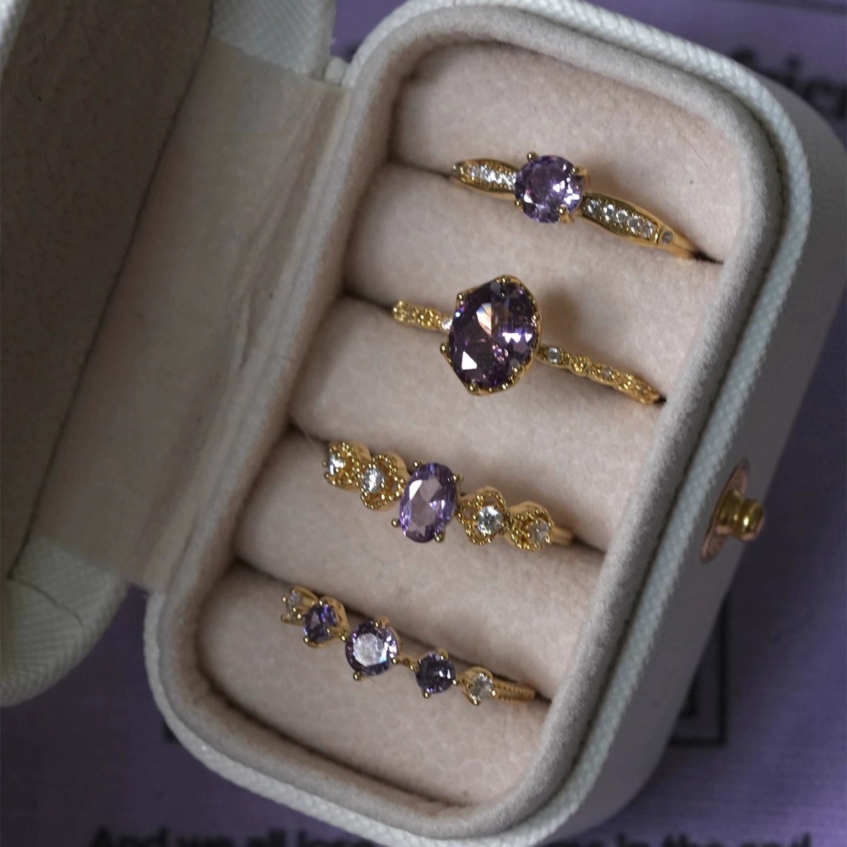 French Retro High-End Gentle Light Luxury Micro-Set Sparkling Purple Zircon Open Ring