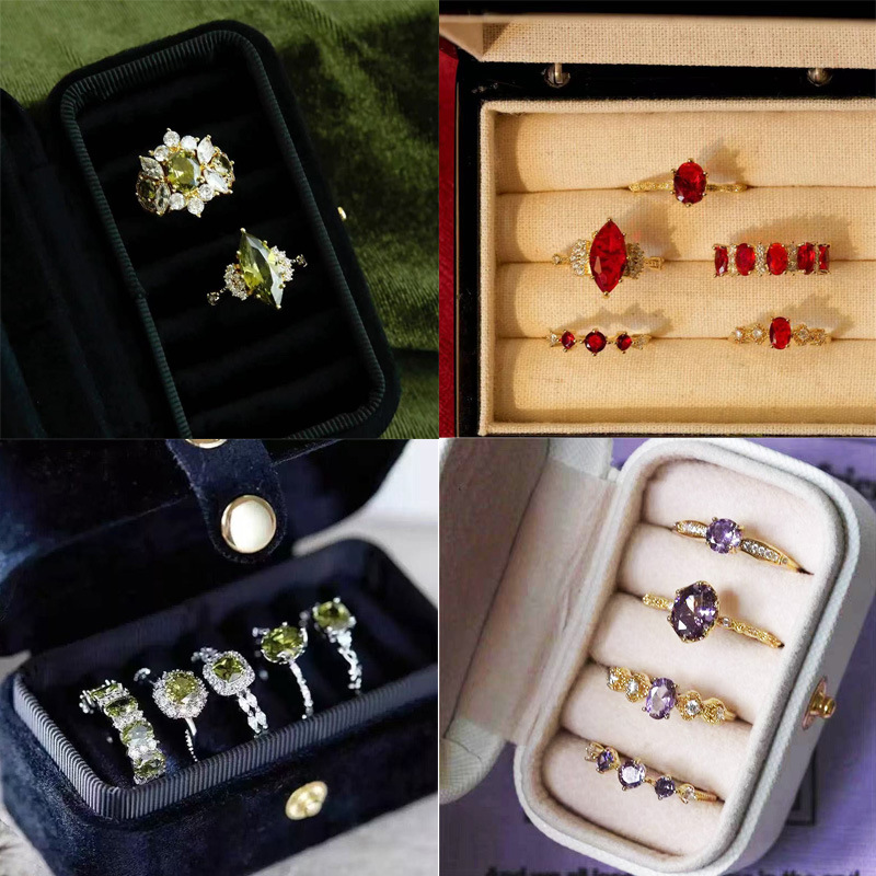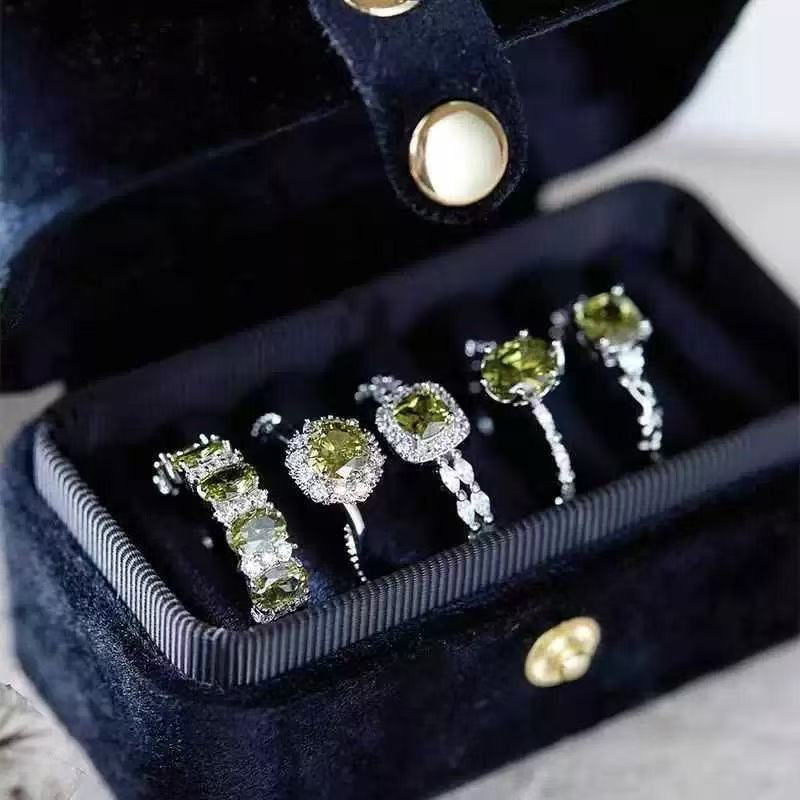 French Retro Olive Green Zircon Ring For Women, Elegant Light Luxury, Niche Exquisite High-End Open Ring