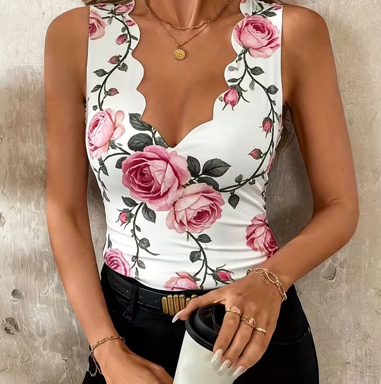 Design: Wavy V-neck, sleeveless slim fit, romantic and elegant