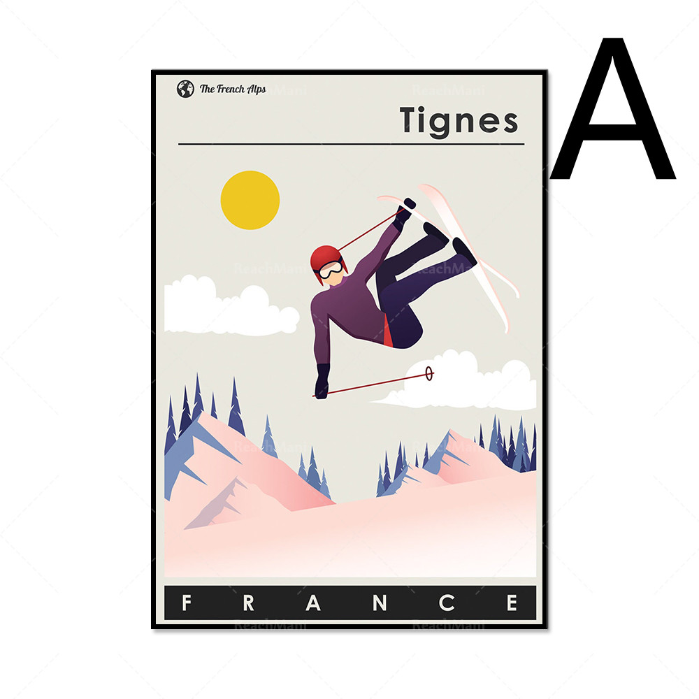 French Ski Poster Decorated In Bohemian Style