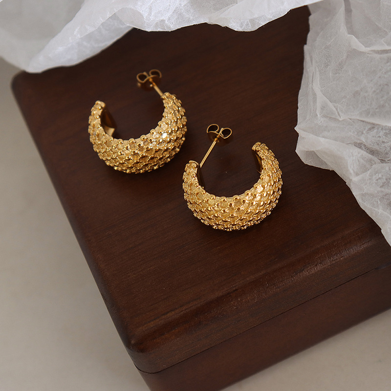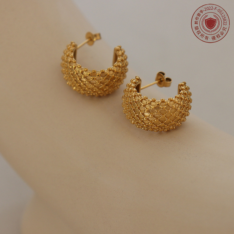 French-style C-shaped Cross Diamond-pattern New Summer Earrings