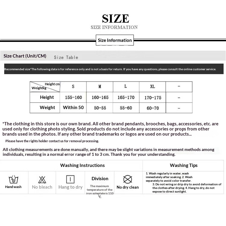 1. Asian sizes are 1 to 2 sizes smaller than European and American people. Choose the larger size if your size between two sizes. Please allow 2-3cm differences due to manual measurement. 2. Please check the size chart carefully before you buy the item, if you don't know how to choose size, please contact our customer service. 3.As you know, the different computers display colors differently, the color of the actual item may vary slightly from the following images.