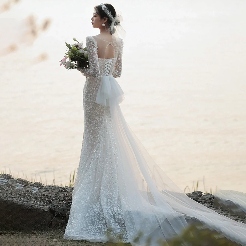 French Style Fishtail Light Wedding Dress Bride Temperament
