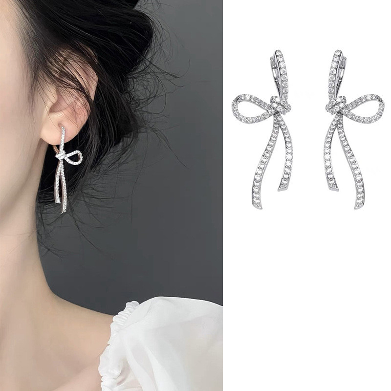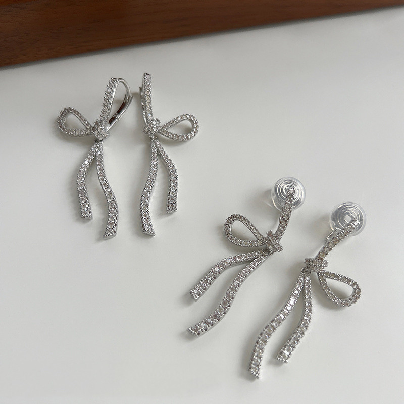 French Style Full Zirconium Bow Ear Clip Without Pierced Mosquito Coil
