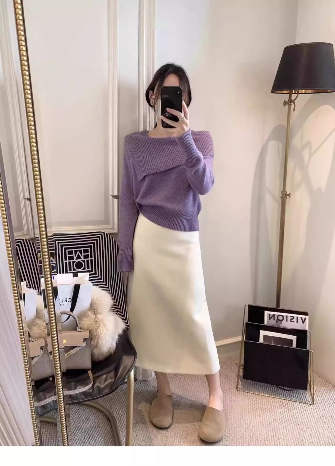 Color: purple, blue, apricot, gray, black