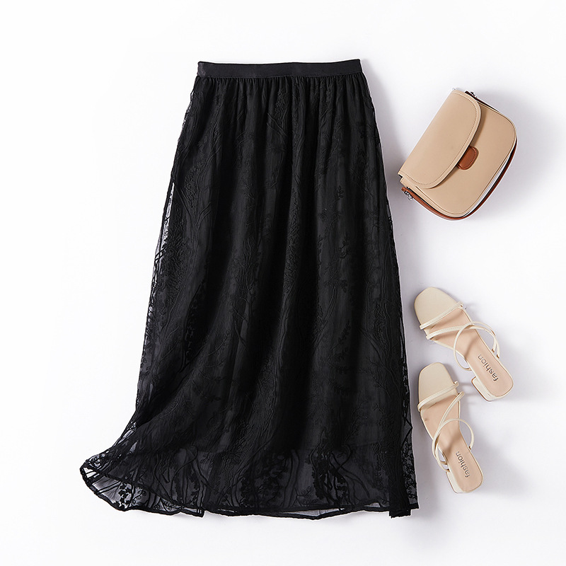 French Style Machine Embroidery Super Fairy Silk Skirt